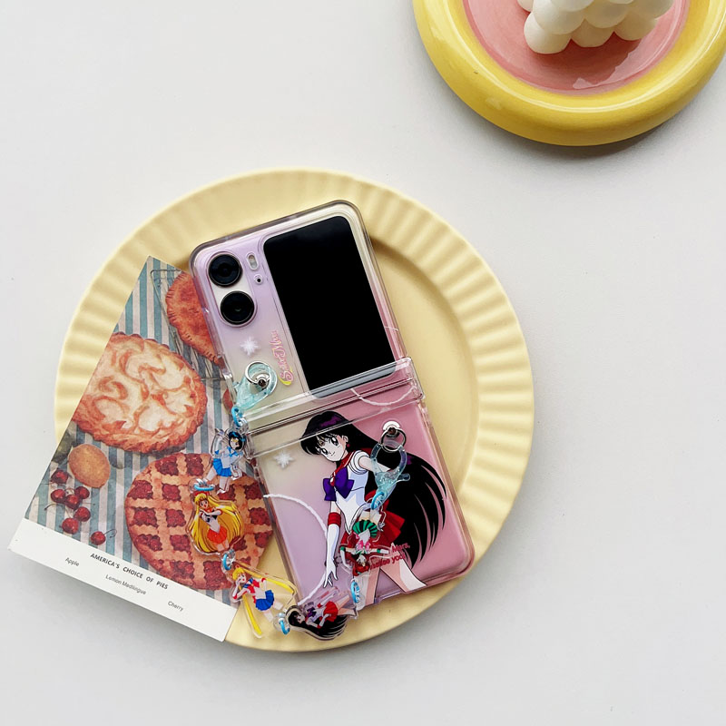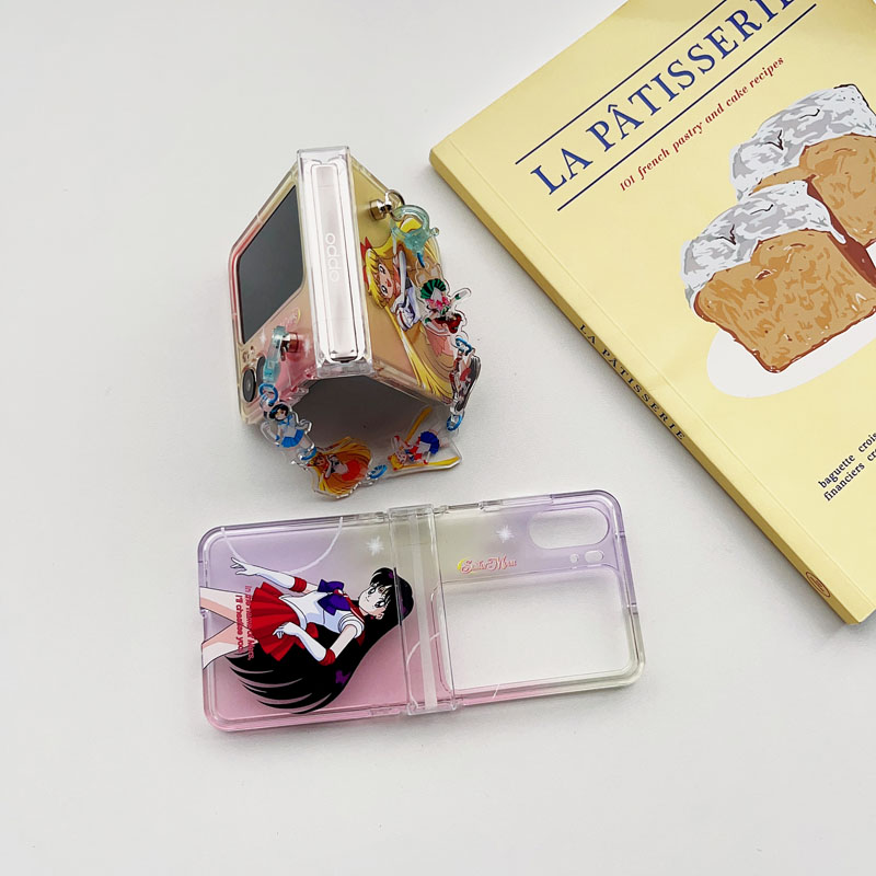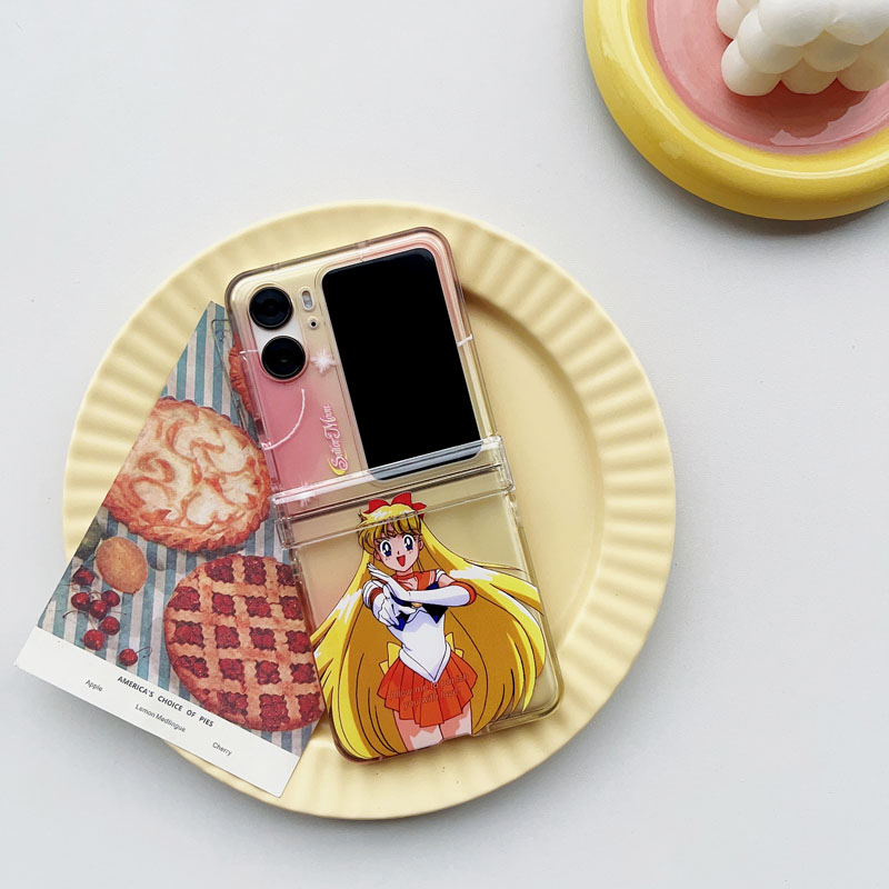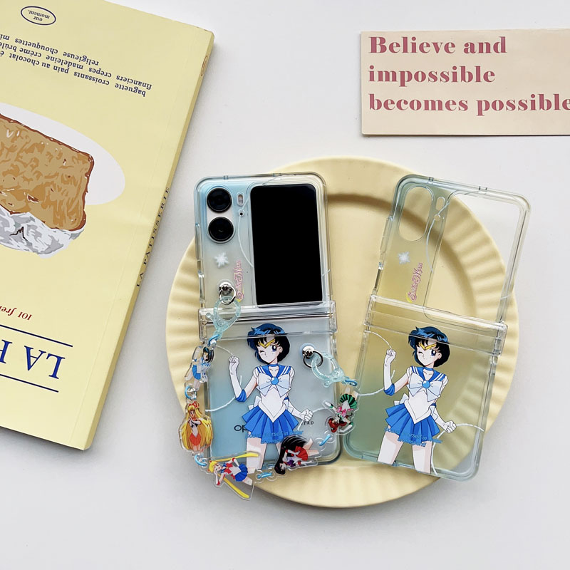 適用oppofindn2flip手機殼可愛卡通美少女戰士鉸鏈全包保護套短鏈手提套n3flip折疊硬殼簡約半透小清新3代