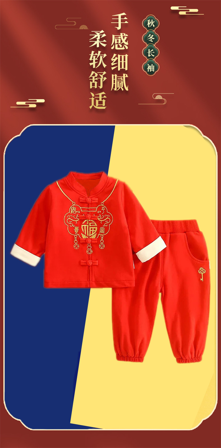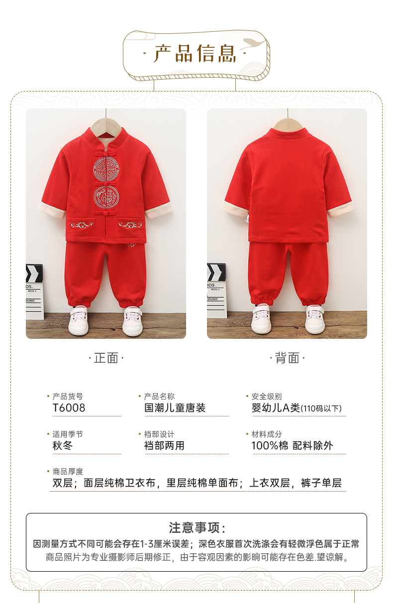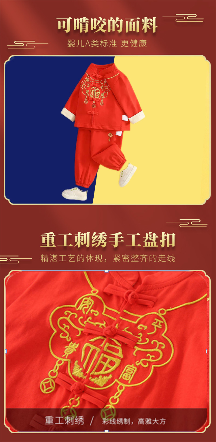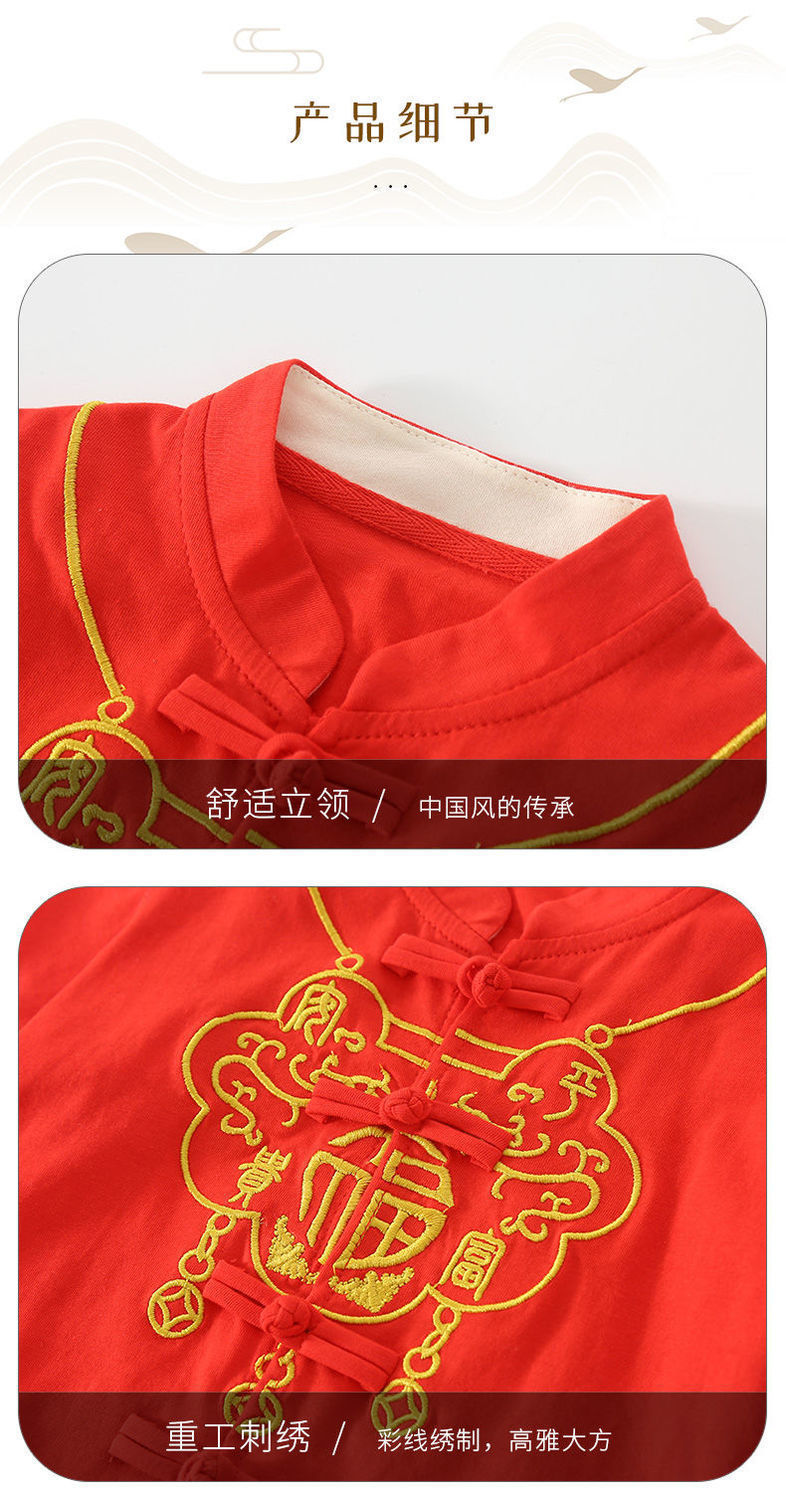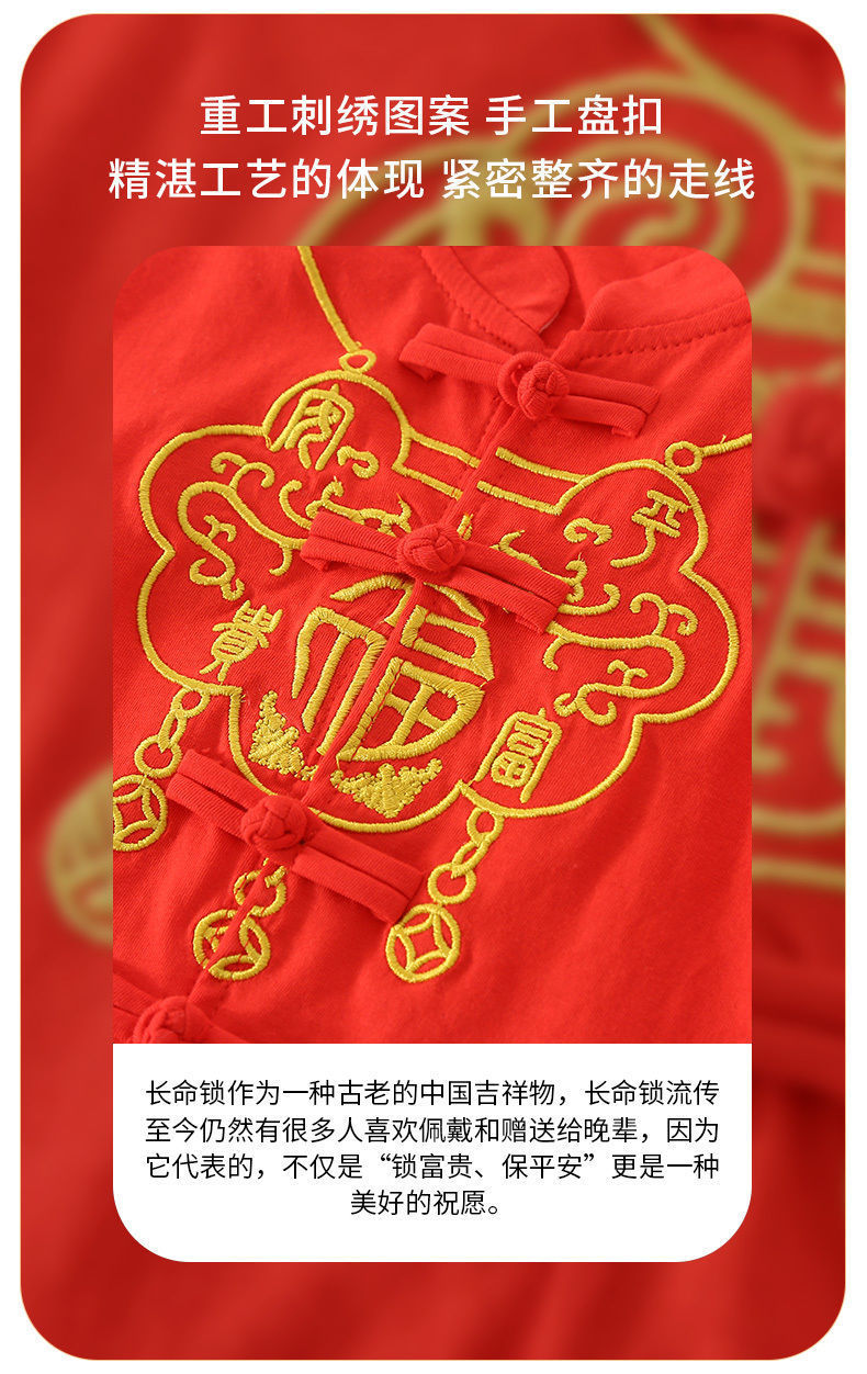 抓周男寶寶女孩紅色純棉唐裝禮服