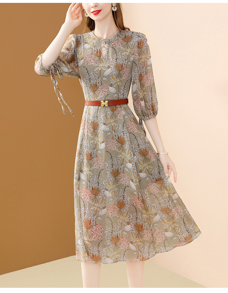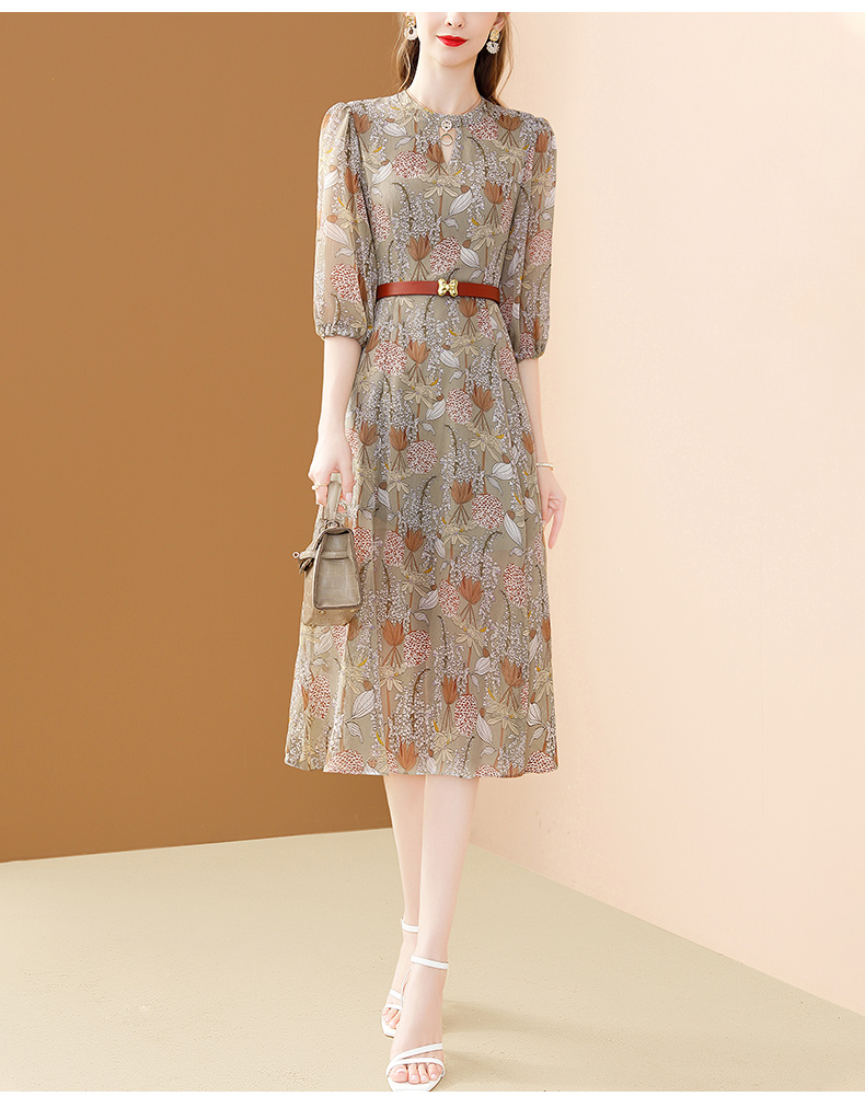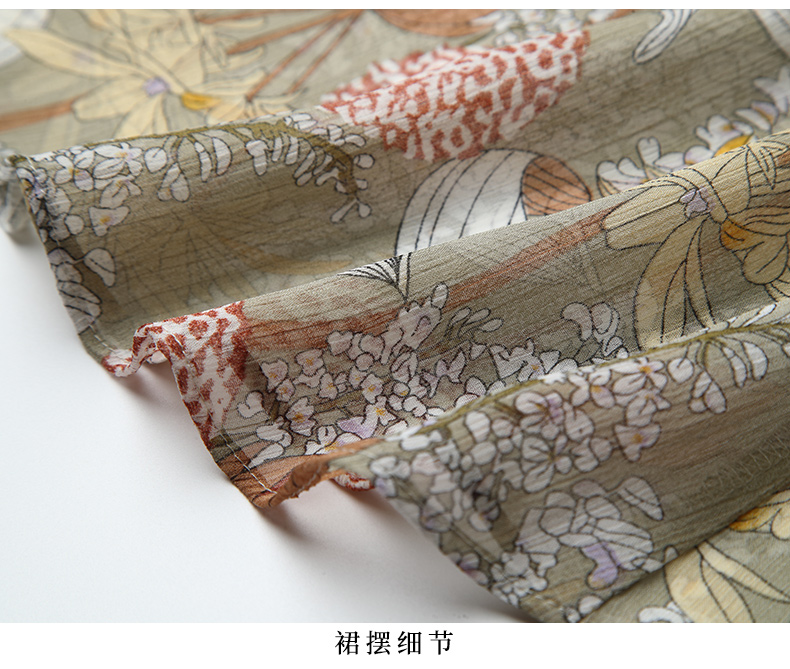 茗思大牌雪紡泡泡袖夏季2023印花裙