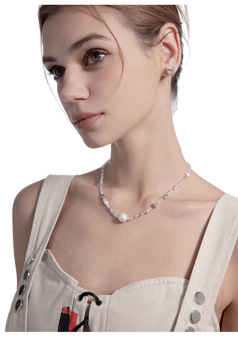 MASW麻秀原創設計高級感時尚串珠優雅鎖骨鏈輕奢甜美氣質碎石項鏈