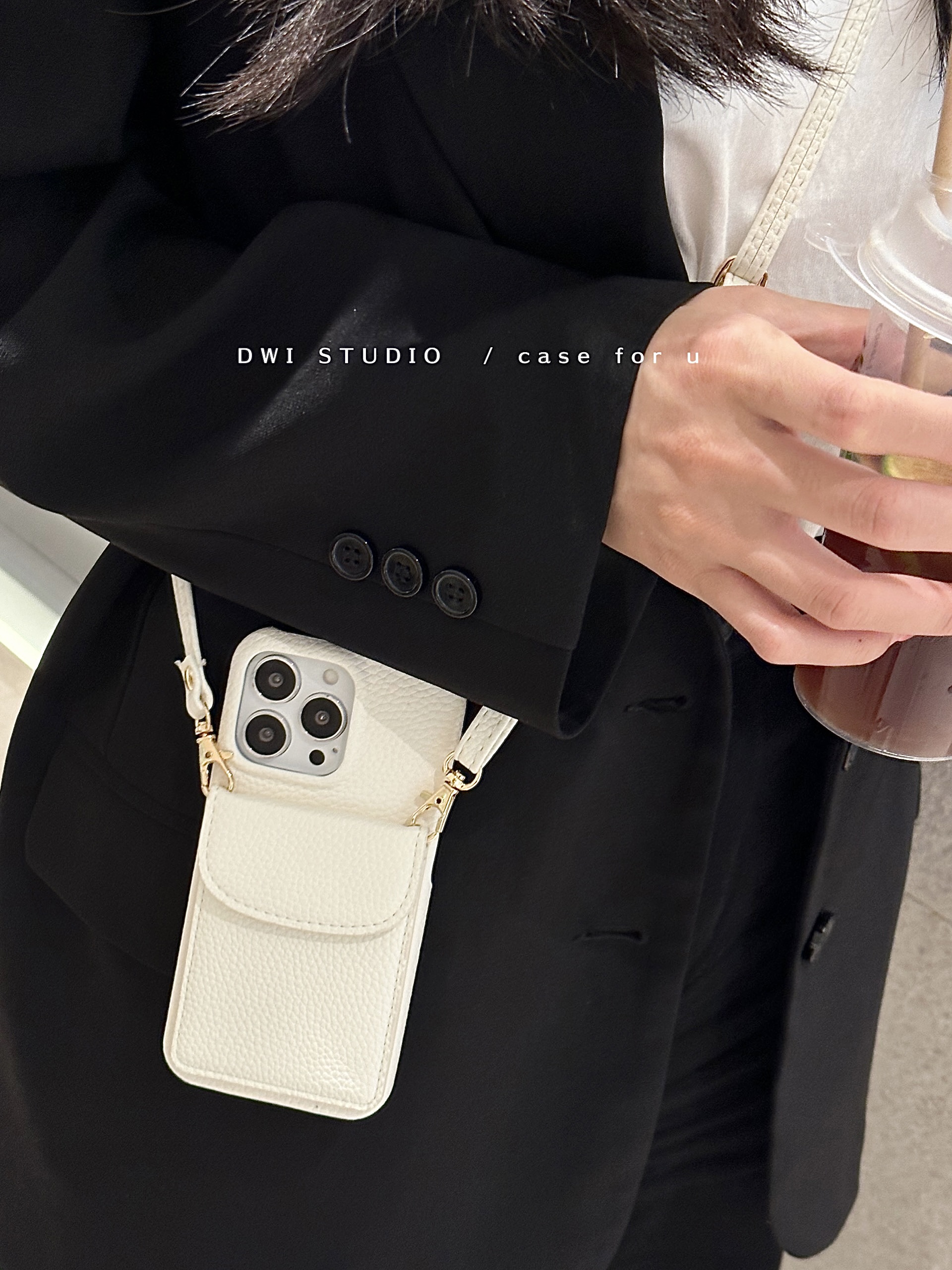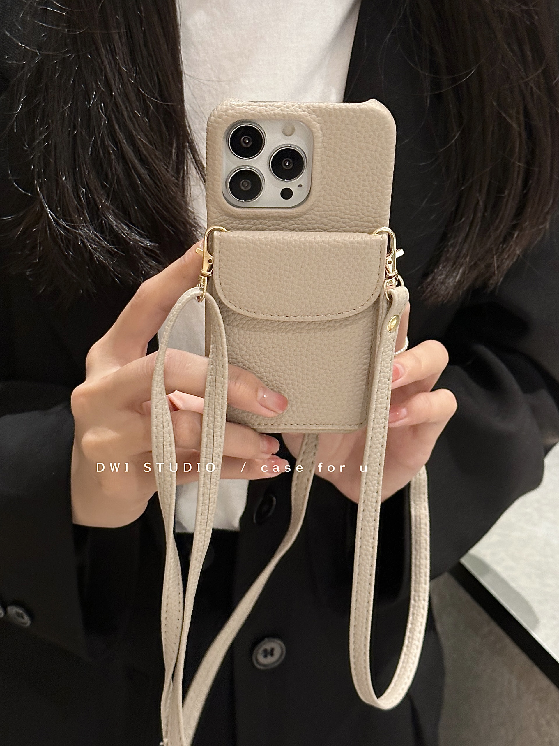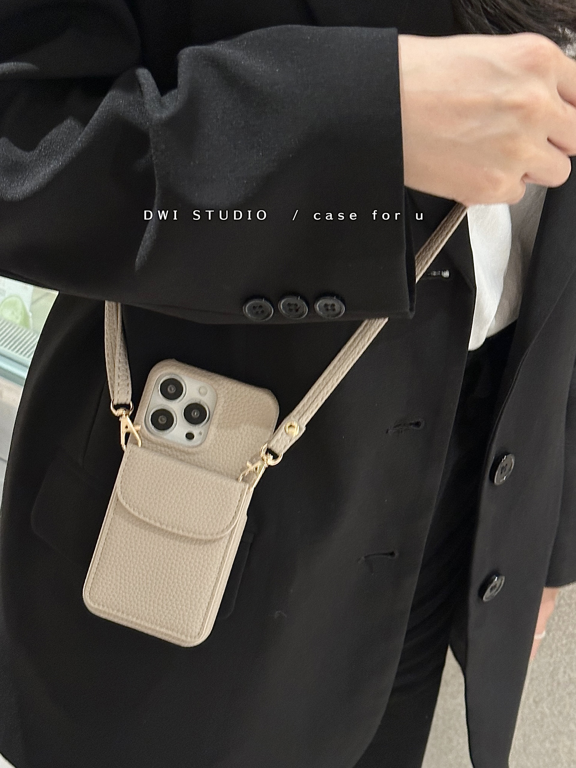 新款皮質斜跨卡包蘋果13掛繩手機殼
