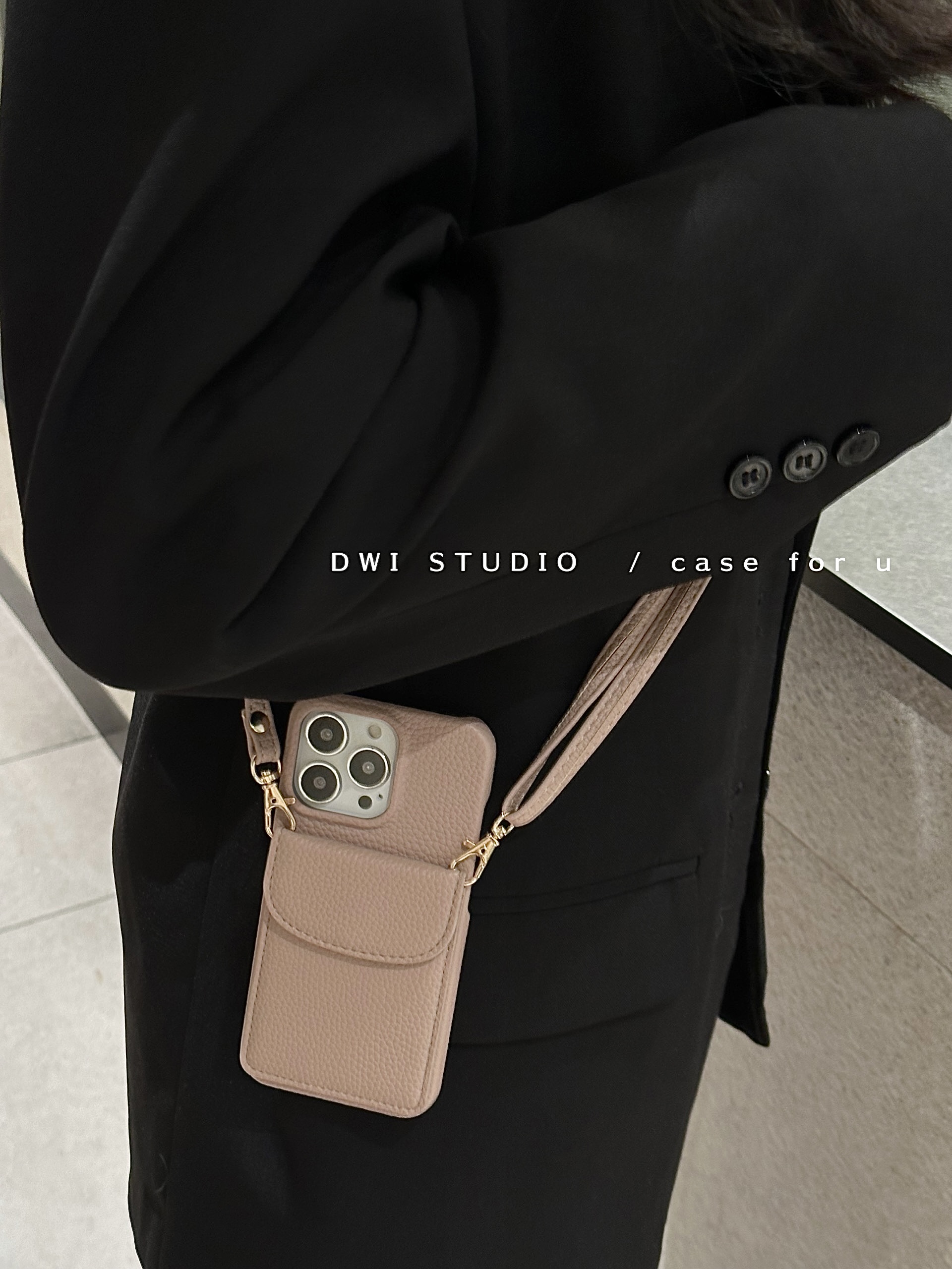 高級感斜挎掛繩卡包皮質手機殼14promax/13硬殼適用蘋果13promax/14新款iphone15pro/12/11