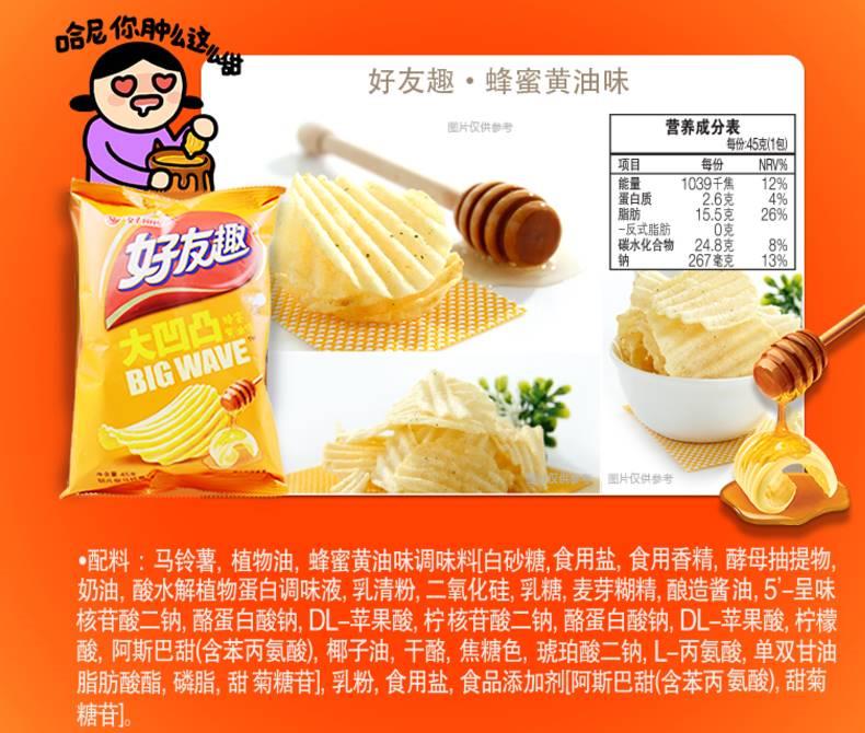 好有趣薯片韓國泡菜薯片45g*10包整箱蜂蜜黃油味薯片烤翅味薯片零
