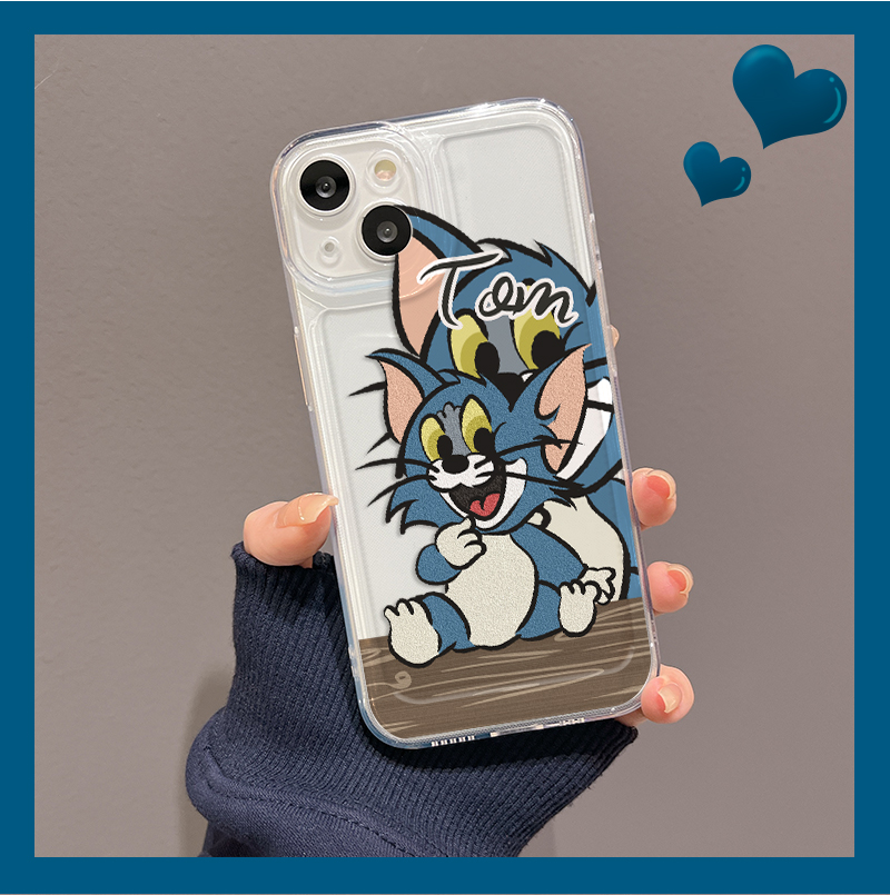 可愛湯姆貓動漫適用蘋果14promax手機殼iPhone13透明硅膠12mini新款11pro網紅1plus5創意xs女xr全包x防摔硬殼