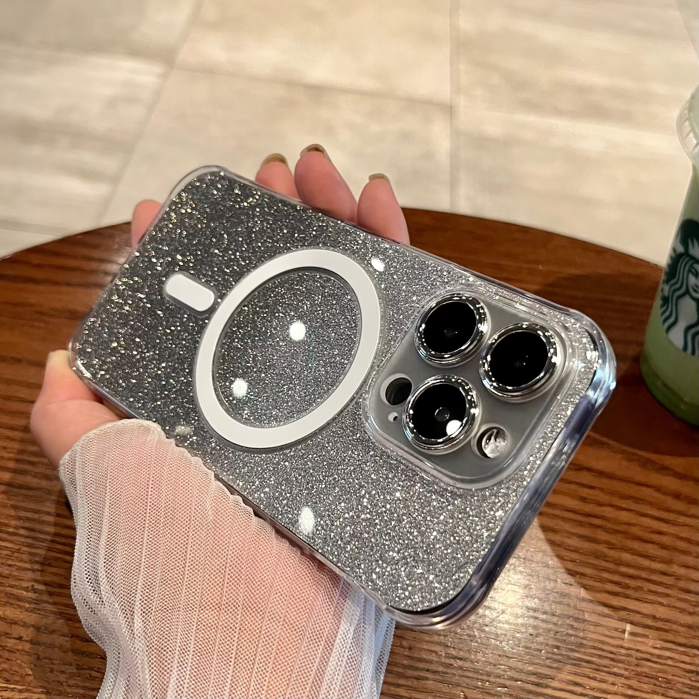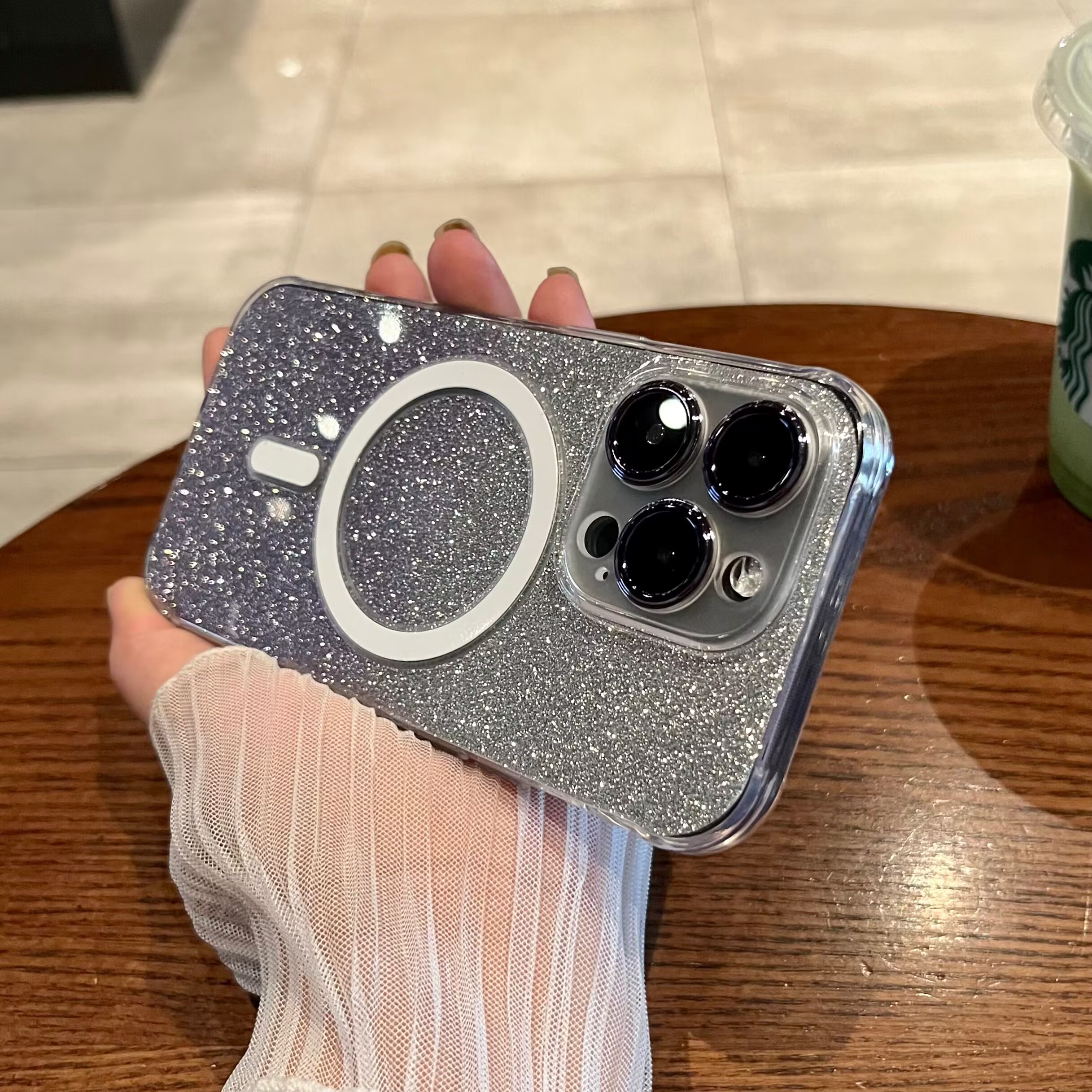 適用蘋果14promax手機殼新款iPhone14Pro磁吸Magsafe漸變閃粉防摔超薄無線充電13plus鏡頭全包十四男女保護套