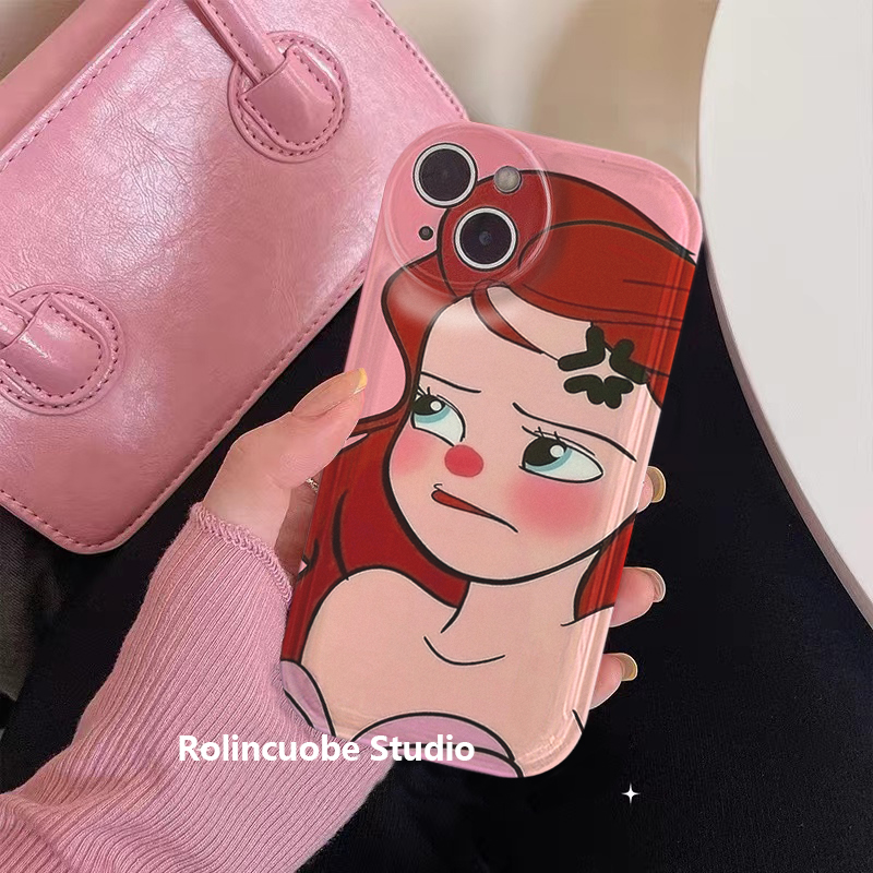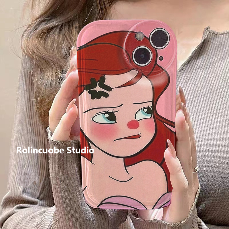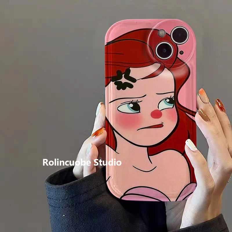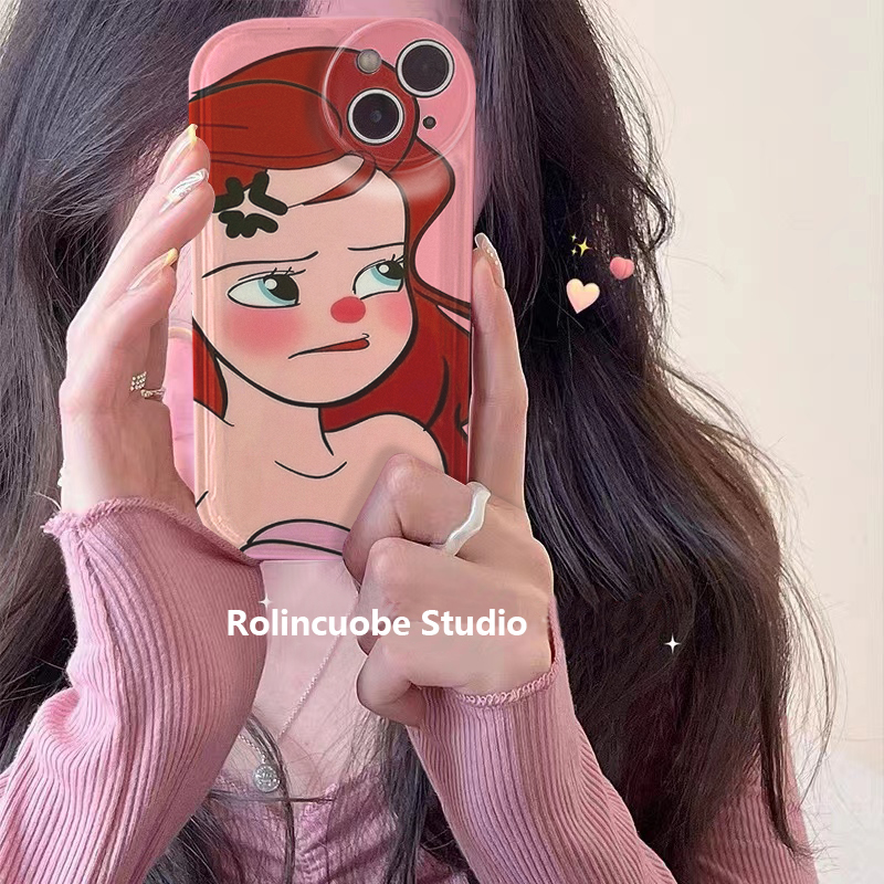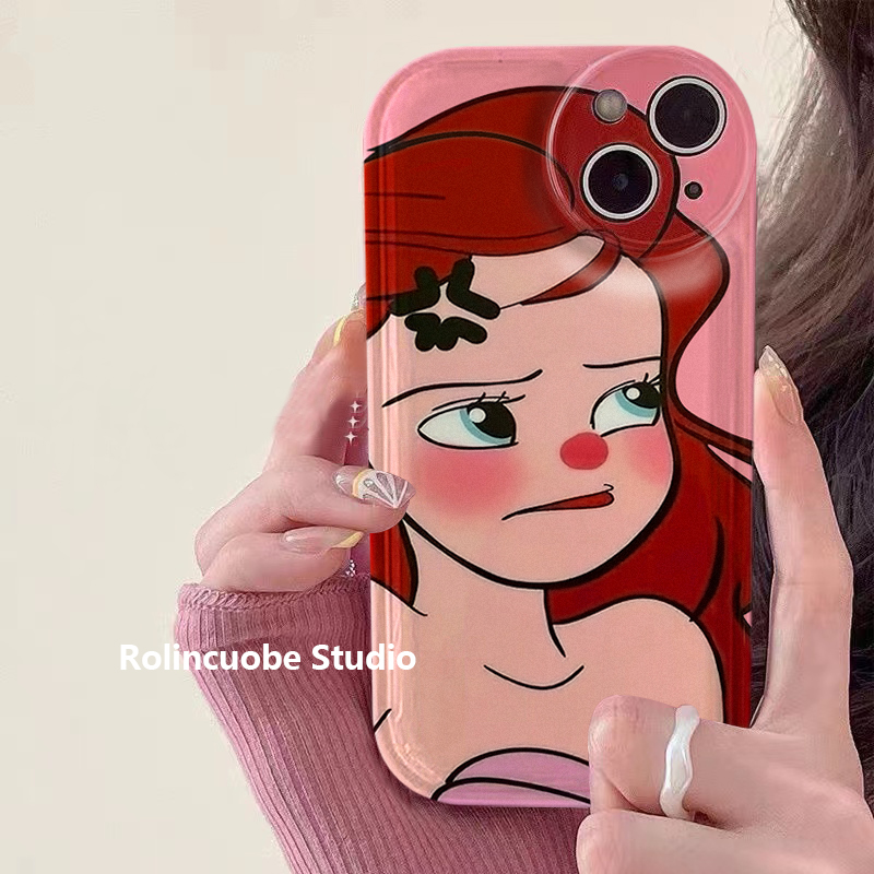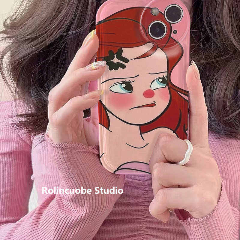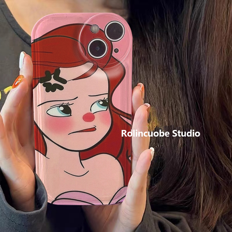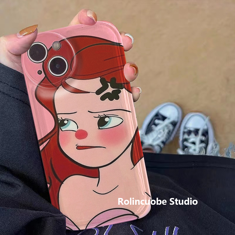 超火網紅卡通可愛生氣美人魚公主蘋果13全包12ProMax11適用于Xs防摔Xr手機殼套女小眾清新款創意文藝甜美術生