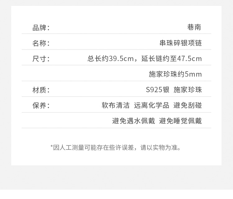 【巷南】925純銀珍珠頸鏈輕奢小眾設計碎銀子項鏈女高級感鎖骨鏈