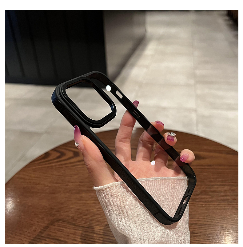 umj 【撞色皮紋軟邊】簡約透明亞克力適用于iphone15新款蘋果14proMax手機殼13高級感pro大孔鏡頭保護套男女