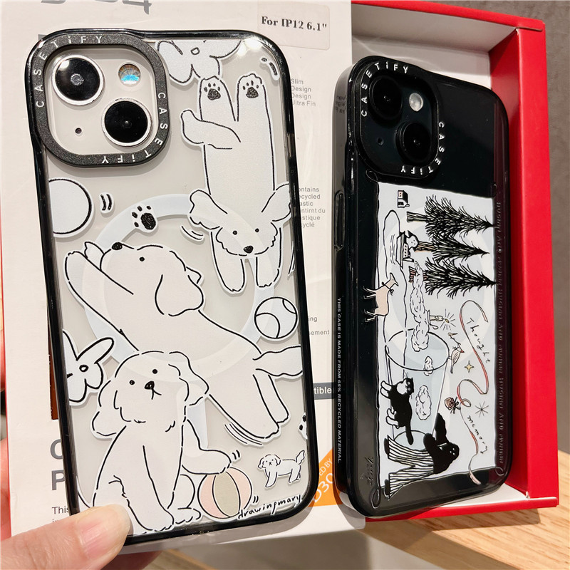 蘋果13手機殼狗狗盧昱曉同款奶牛貓插畫卡通可愛透明磁吸小眾夏天潮牌女款創意個性新款iphone14promax保護套