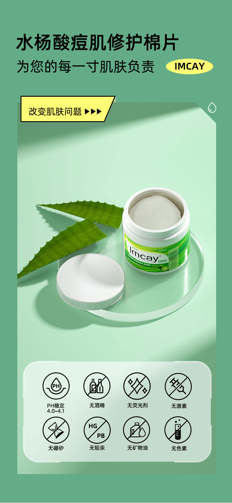 德國imcay水楊酸棉片祛痘痘印刷去閉口粉刺黑頭收縮毛孔清潔正品