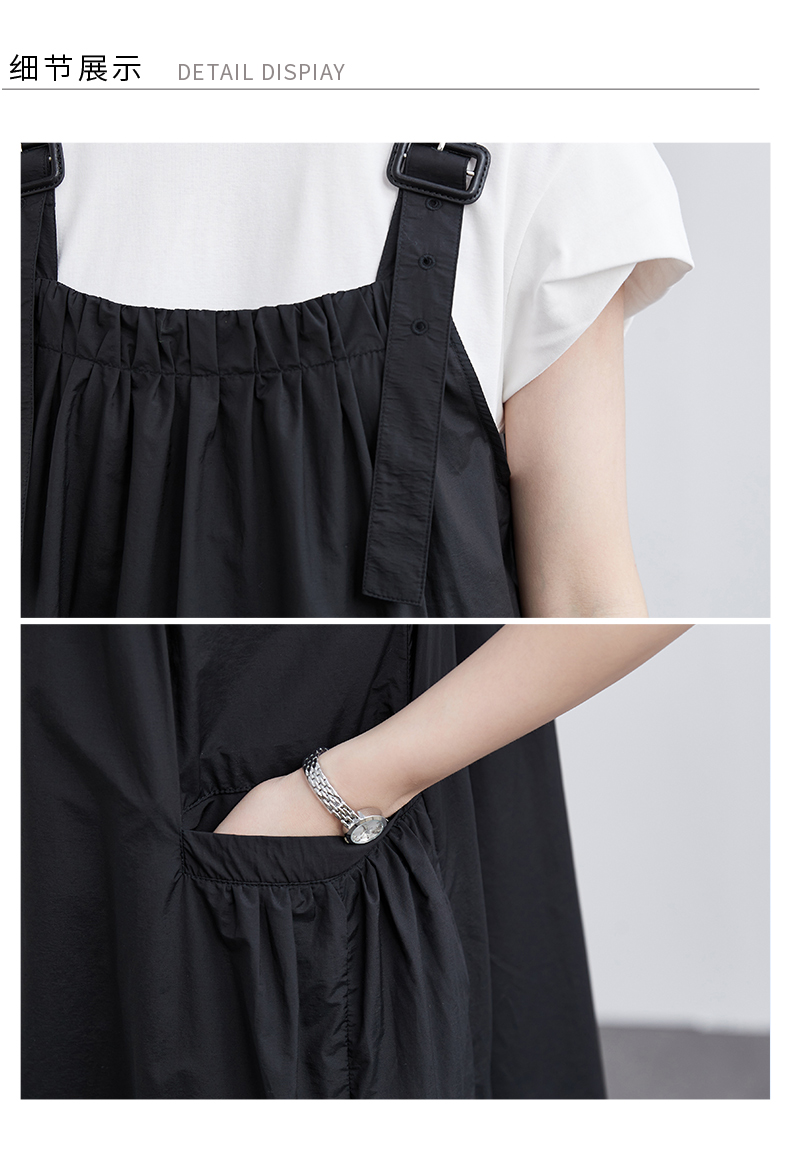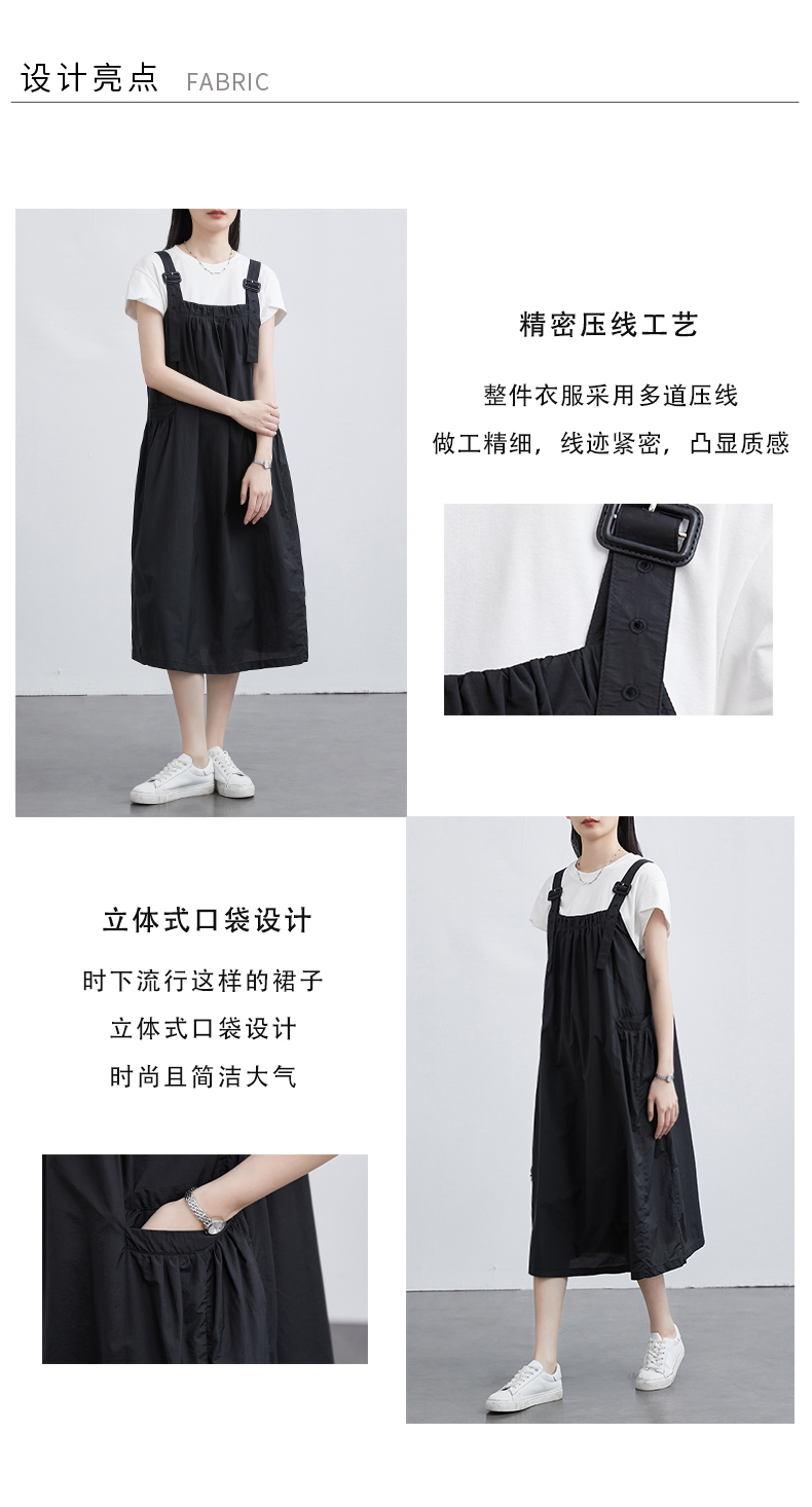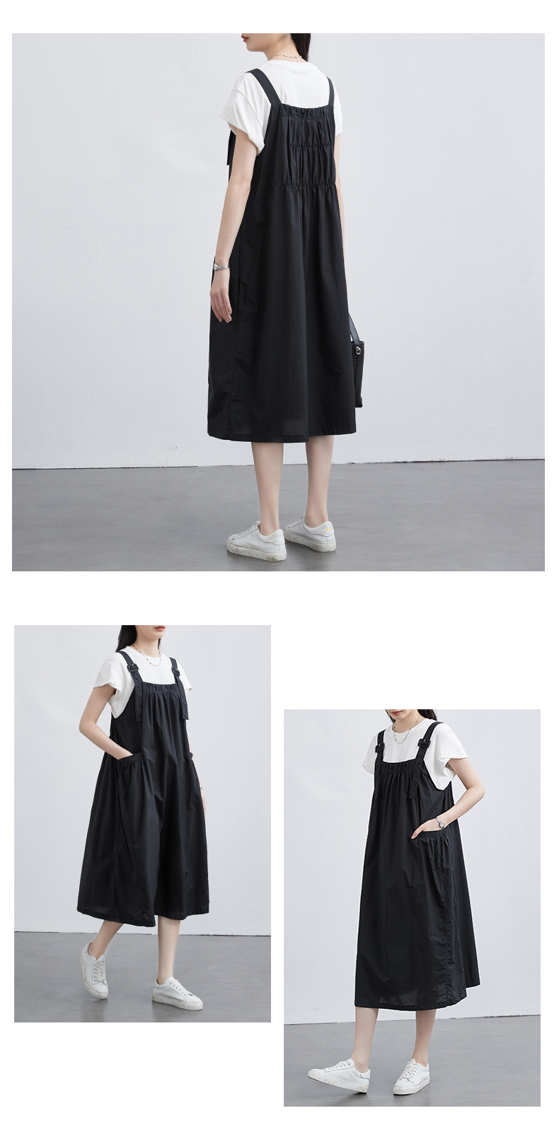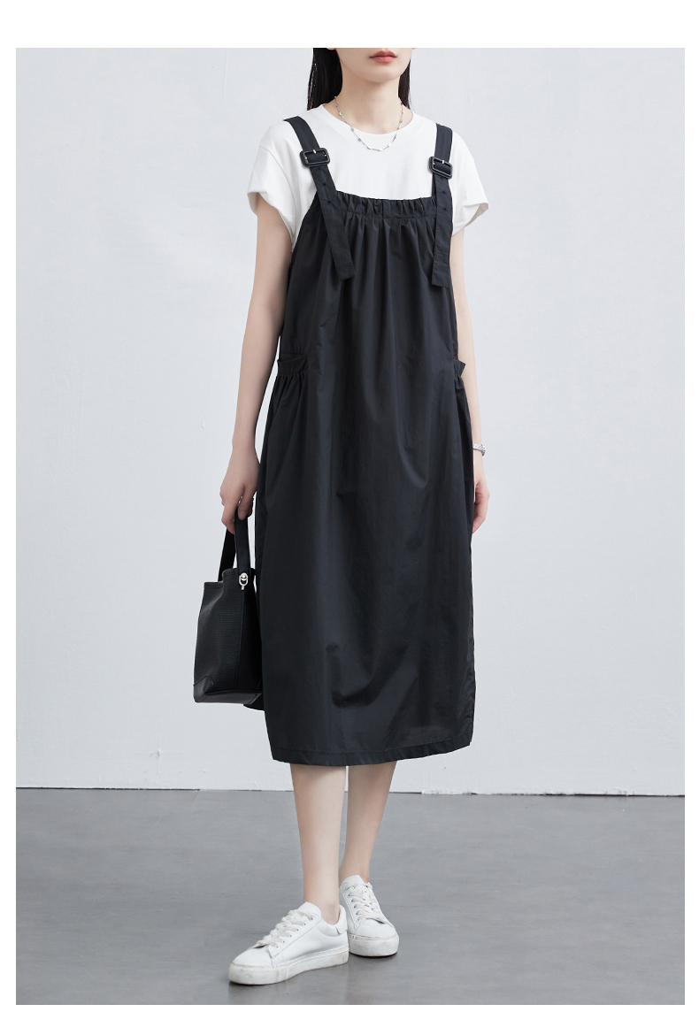 黑色可調節吊帶裙女2023夏季新款無袖休閑顯瘦寬松腰中長款連衣裙