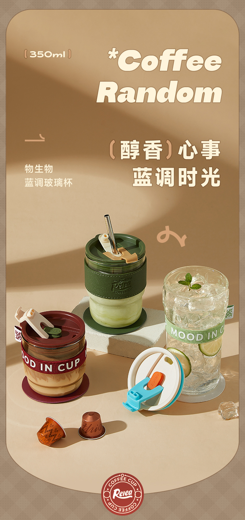 物生物玻璃可愛夏季高顏值帶咖啡杯