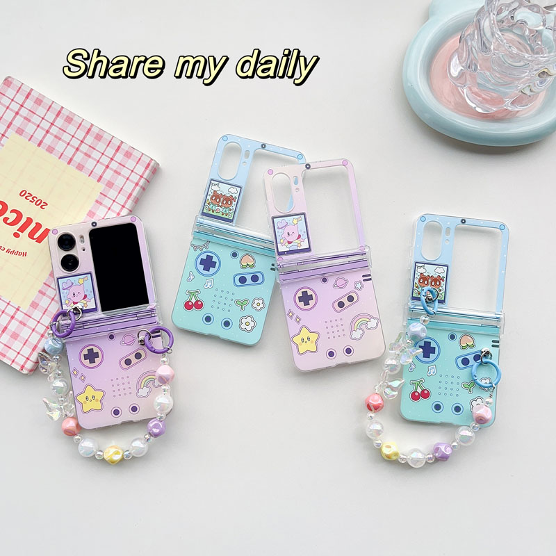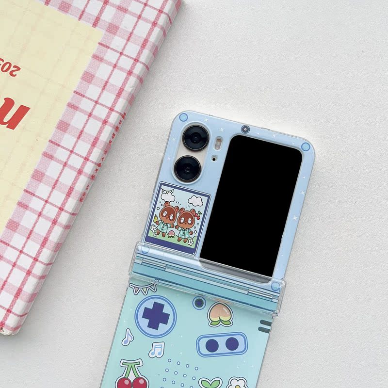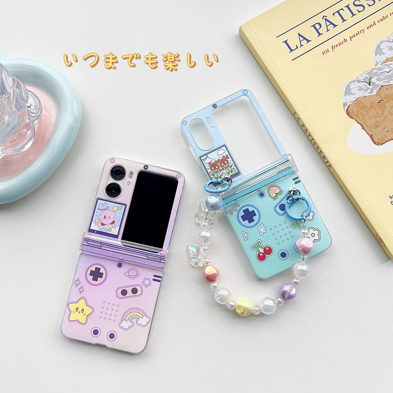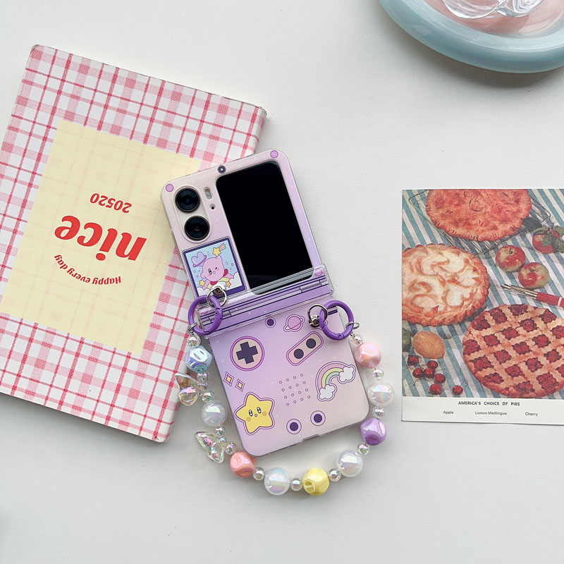 適用oppofindn2flip手機殼創意可愛卡通漸變游戲機卡比鉸鏈全包保護套短鏈手提套n3flip小折疊硬殼女浣熊3代