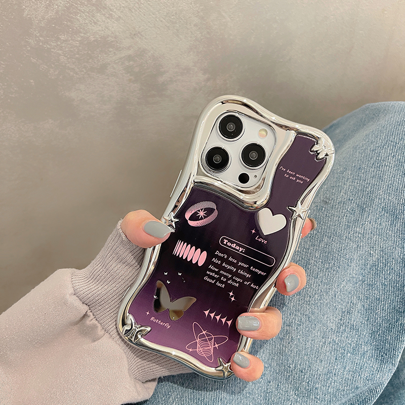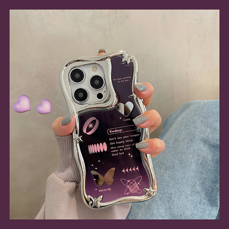 小眾ins紫黑色漸變蝴蝶愛心適用蘋果14手機殼iphone13pro高級感12promax可愛新款11鏡面鏡子補妝max創意網紅