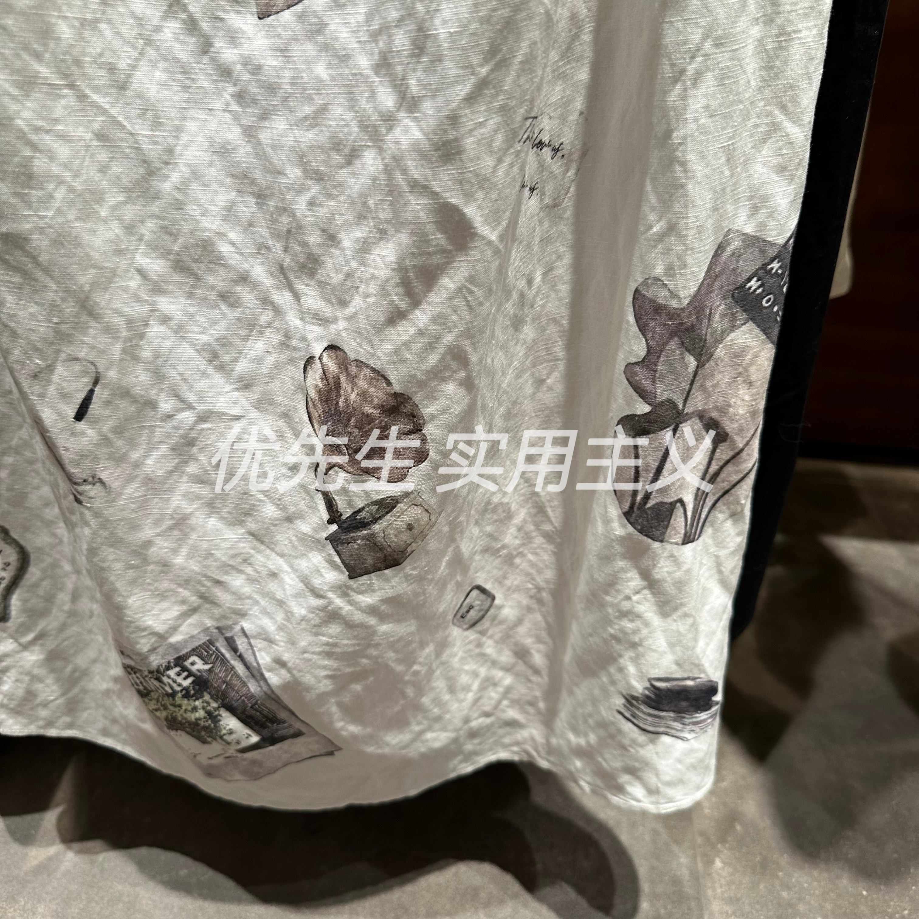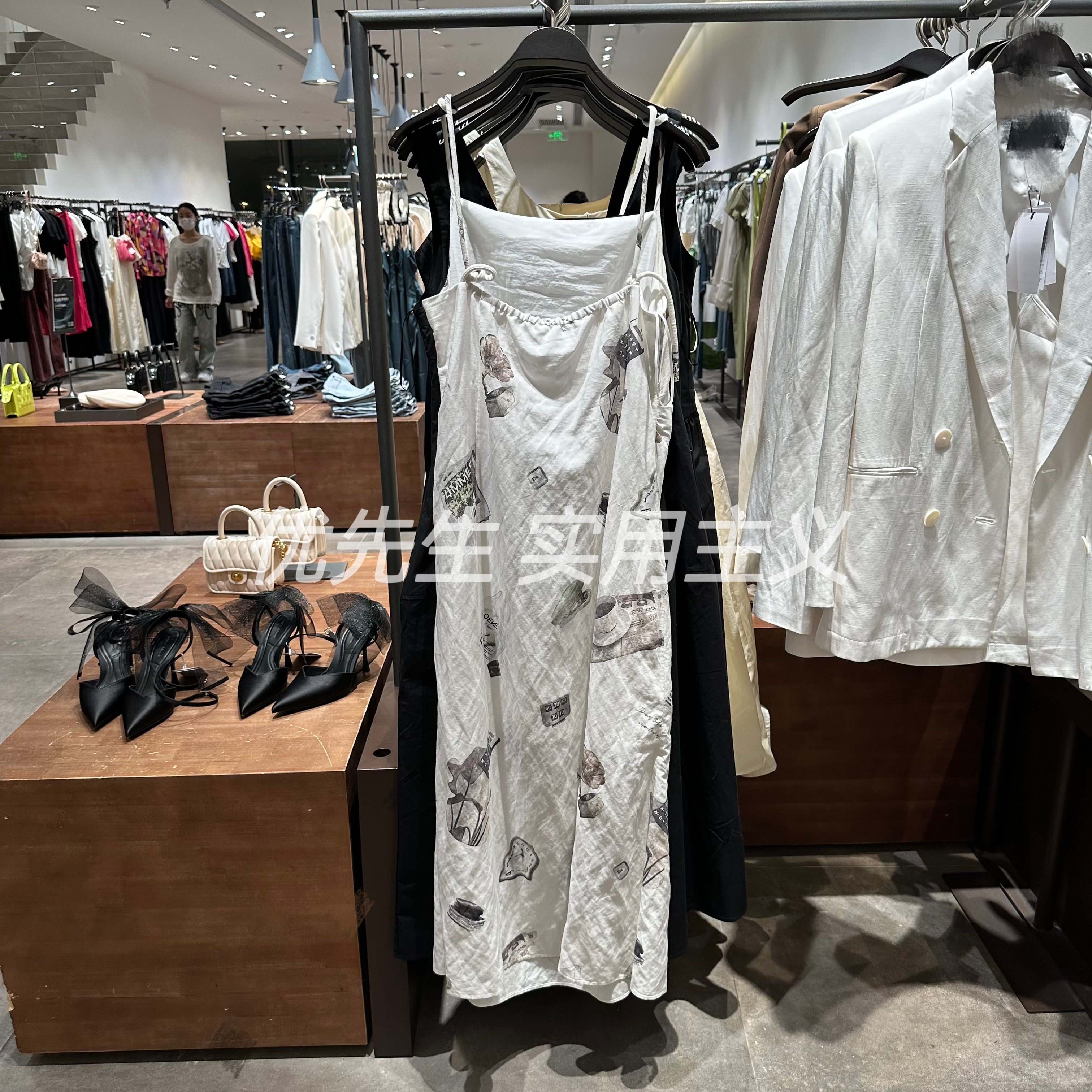 YT&UR2023夏新款女裝設計感文藝別致印花綁帶吊帶連衣裙UWU732081