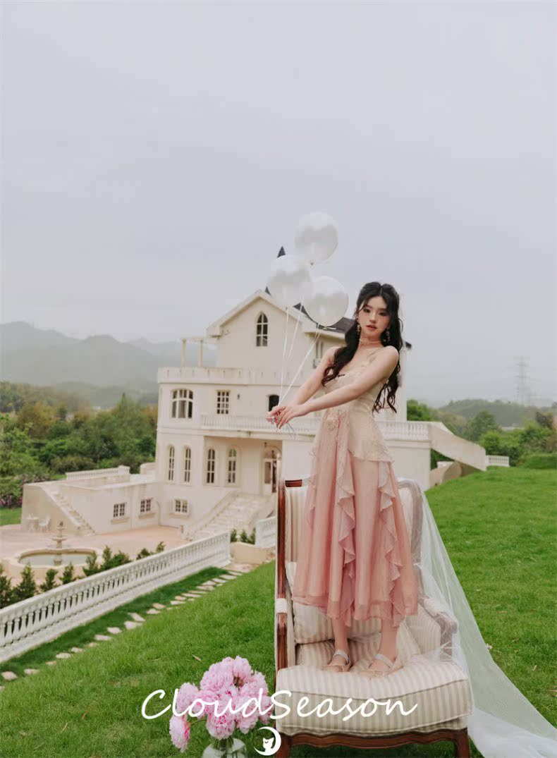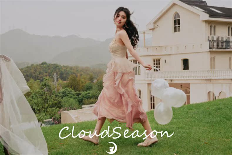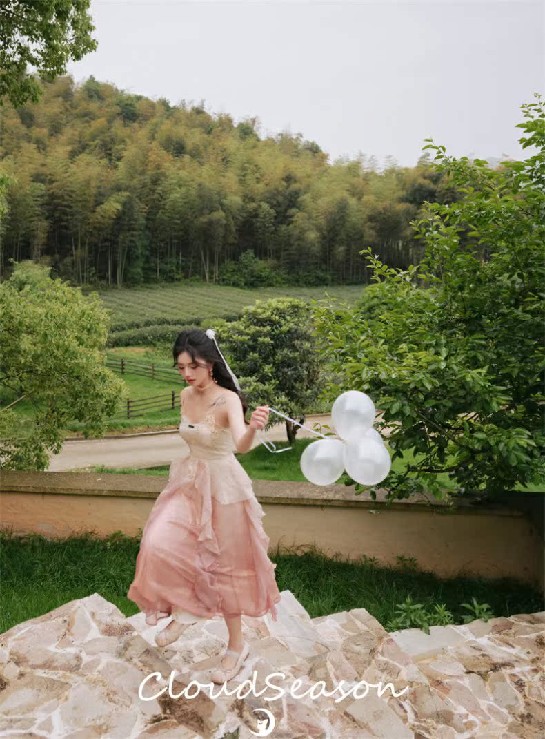 CLOUDSEASON 23新款純欲荷葉邊立體花朵設計吊帶不規則仙女裙