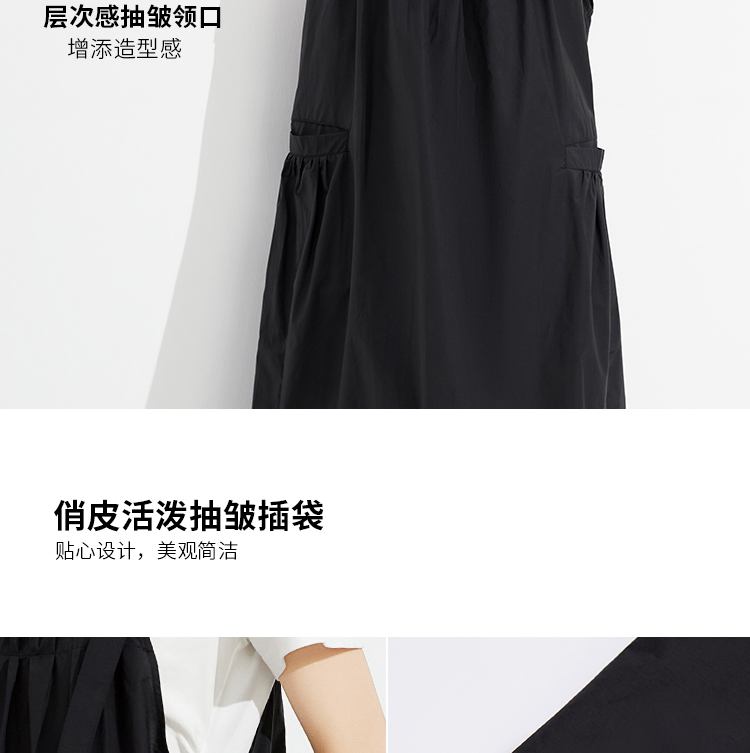 她池時尚連衣裙2023夏裝新款女裝簡約圓領抽繩收腰假兩件中長裙