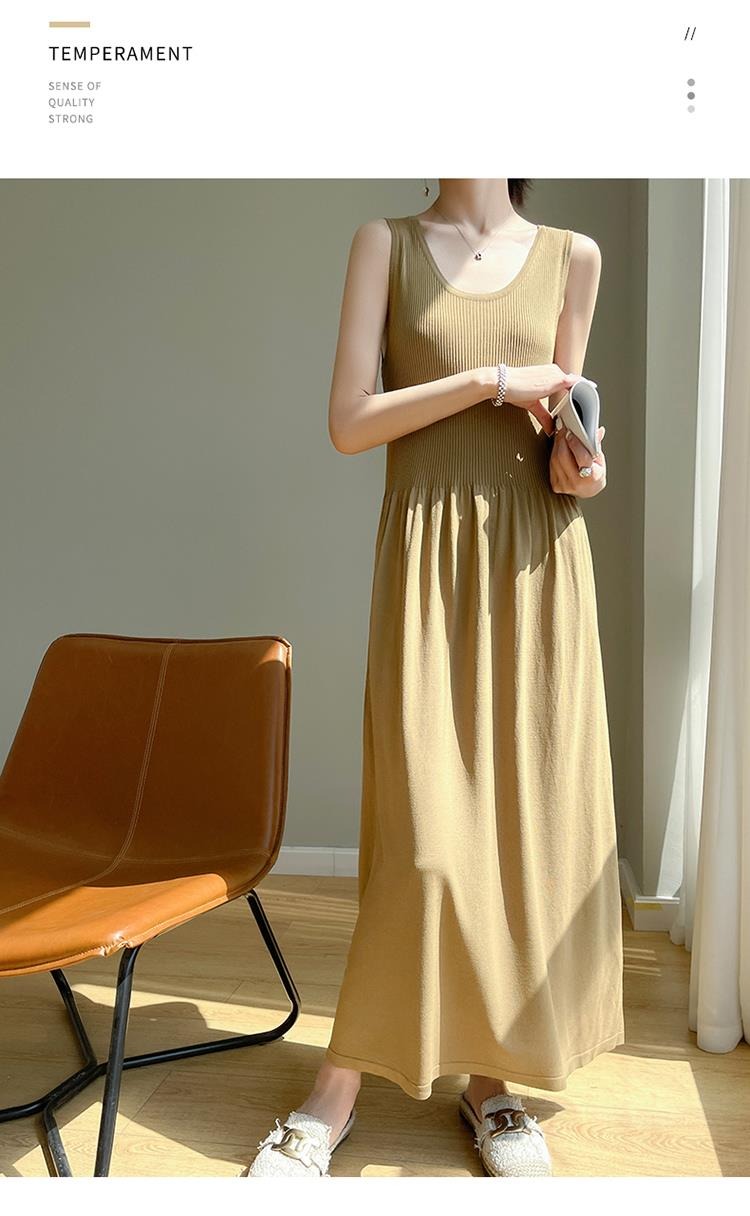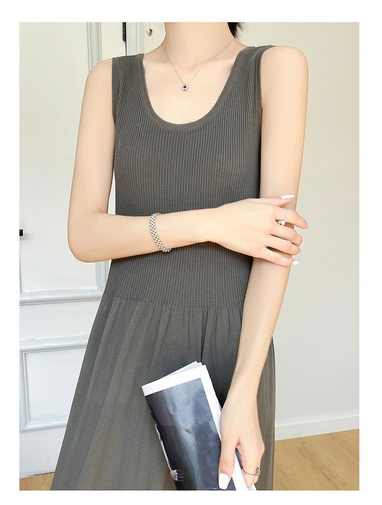 針織無袖背心內搭吊帶連衣裙子女夏季新款設計感氣質圓領冰絲長裙
