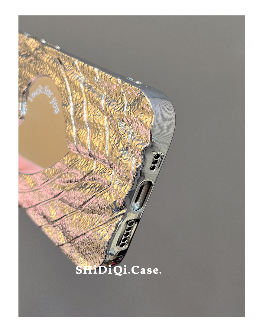 詩迪奇電鍍銀波浪紋愛心鏡面手機殼