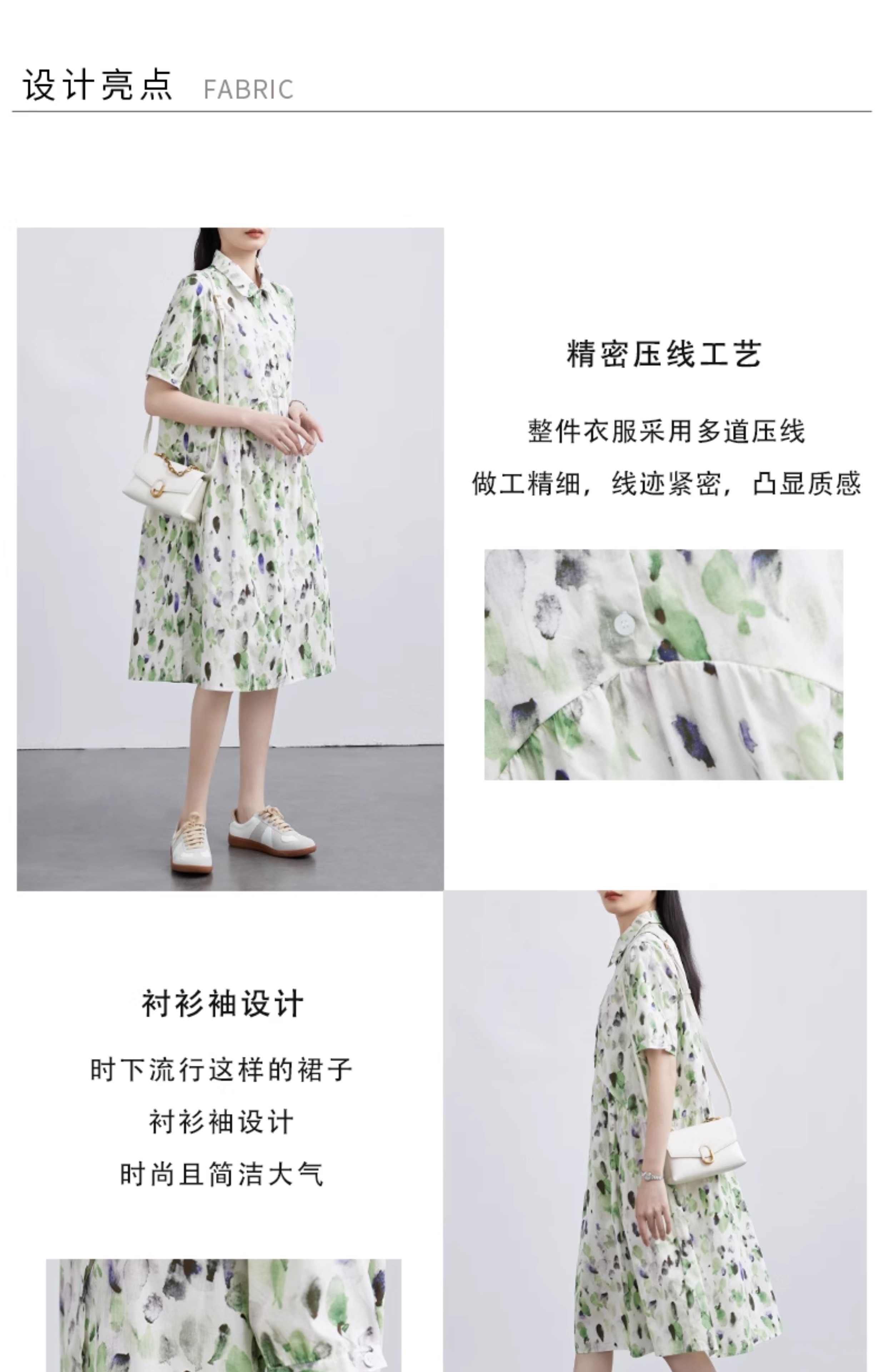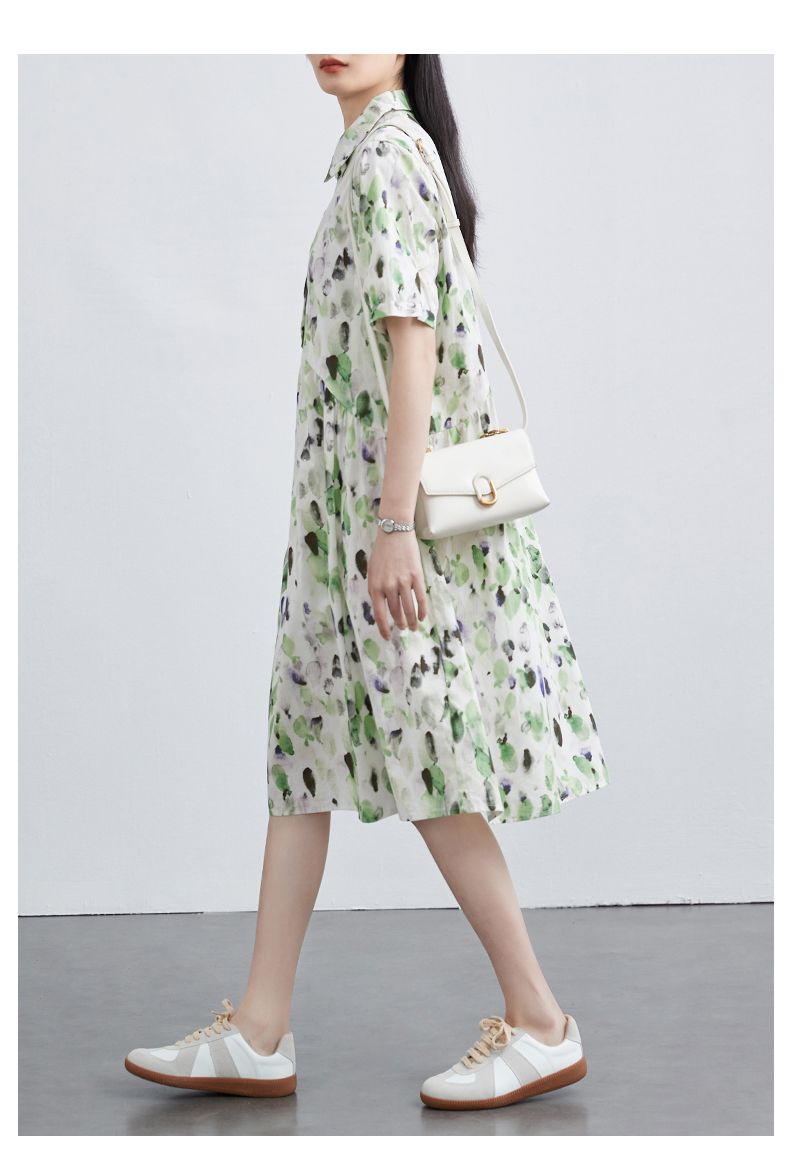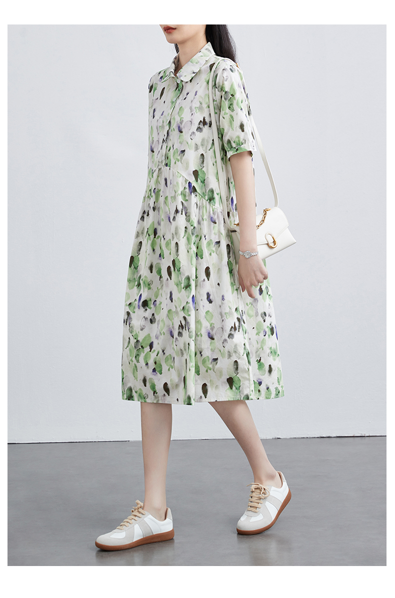 印花polo領連衣裙女中長款2023夏季新款短袖休閑氣質顯瘦a字裙