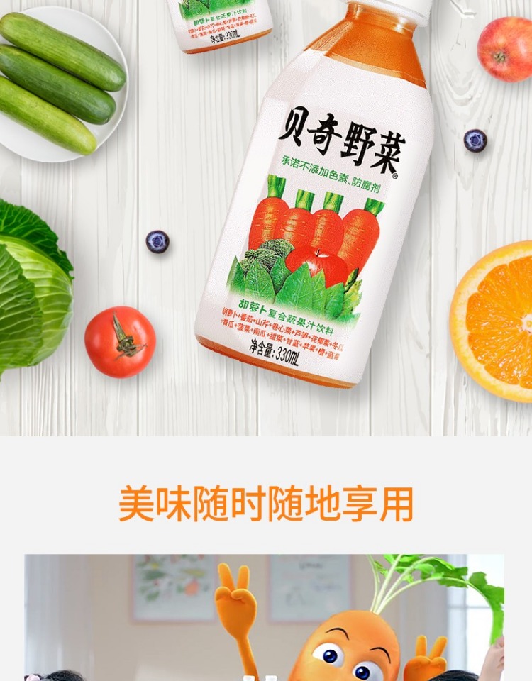 貝奇野菜汁330ml*15瓶一箱福建特產果味果汁復合蔬果胡蘿卜汁飲料
