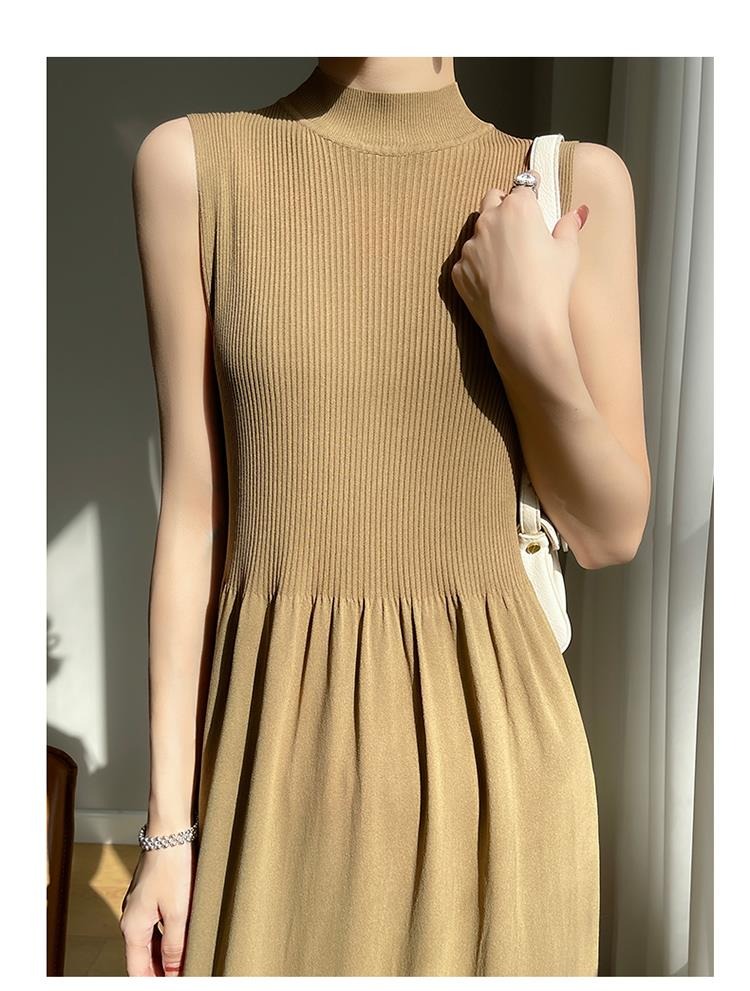 十三行秋裝法式風半高領無袖修身顯瘦長款咖啡色針織背心連衣裙女