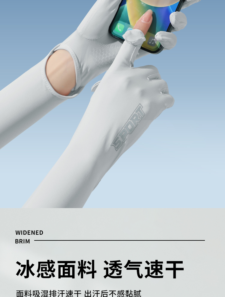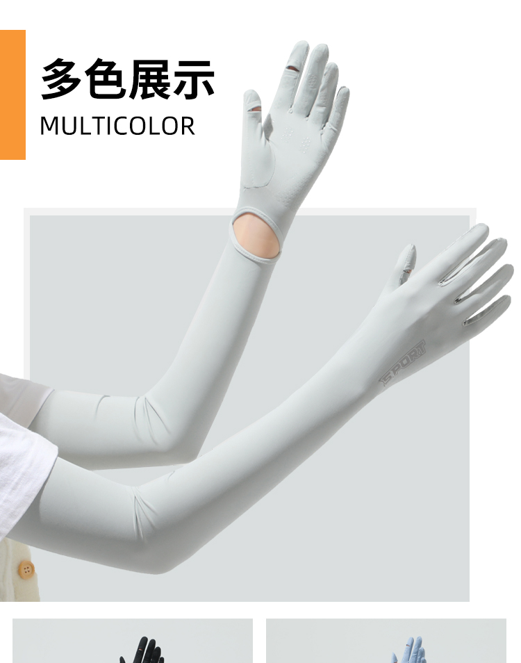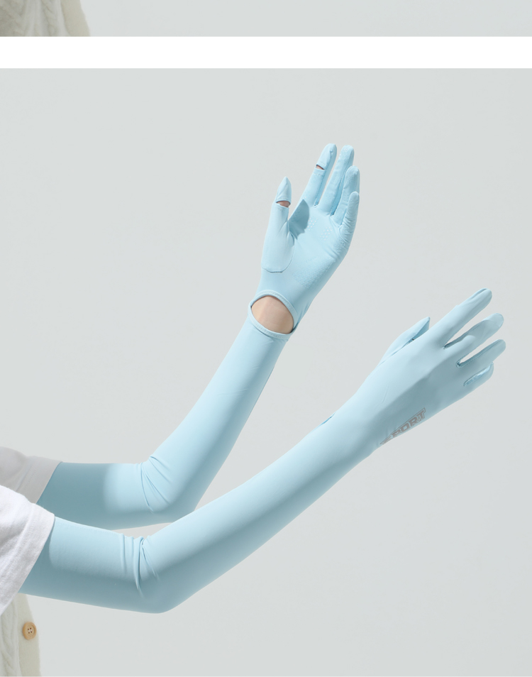 加長防曬手套冰感防紫外線UPF50+手臂袖套透氣戶外時尚冰絲手套