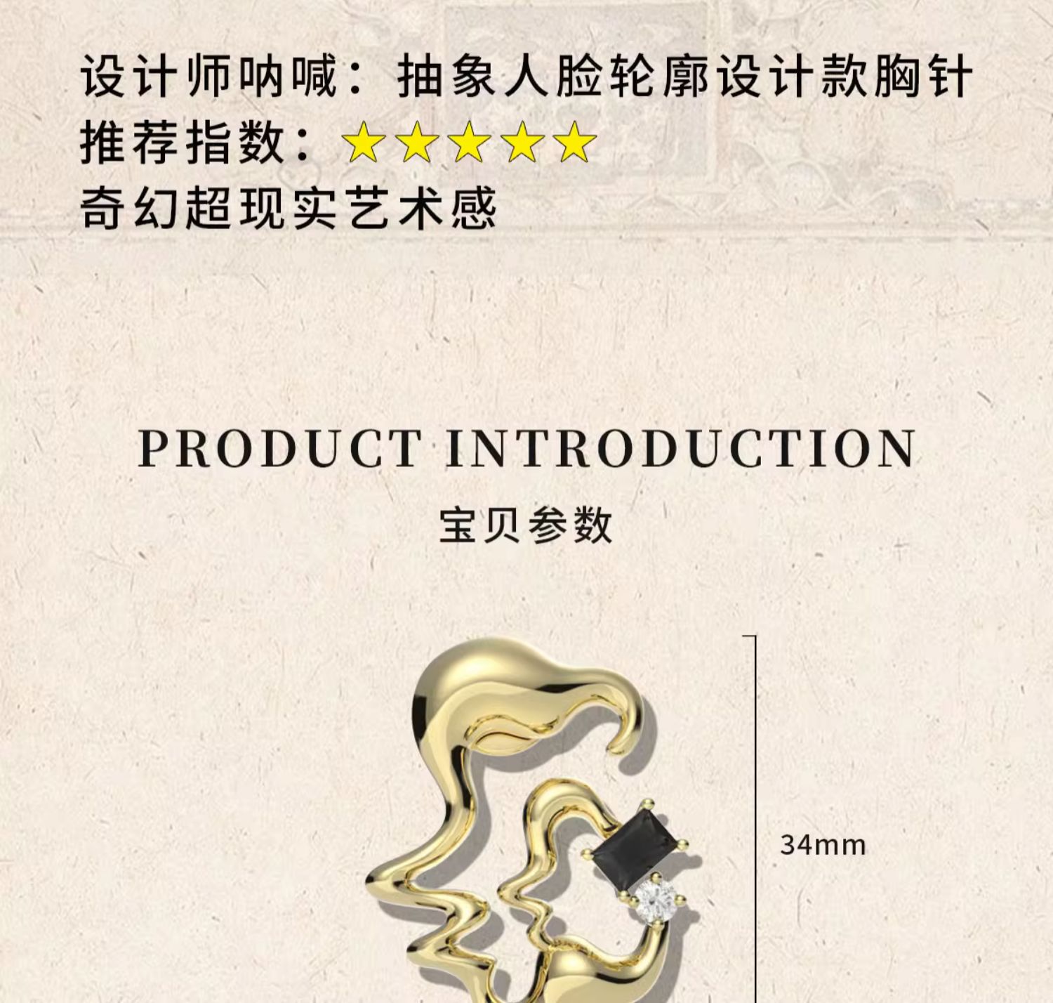 毛不易同款宜蘭珠寶可調節人臉胸針個性小眾金色時尚配飾節日禮物