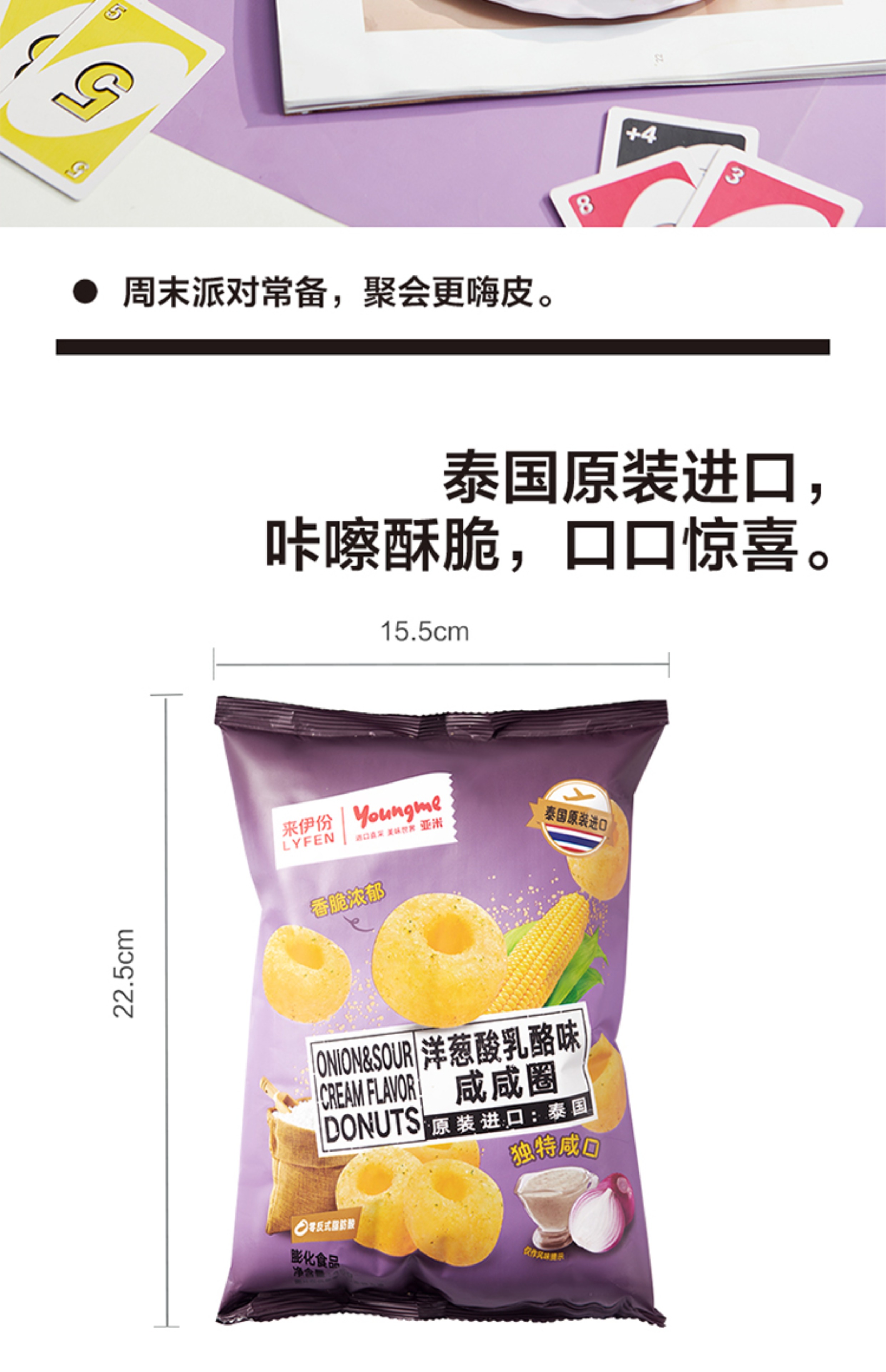 來伊份亞米洋蔥酸乳酪味咸咸圈45g袋裝泰國進口膨化小吃來一份