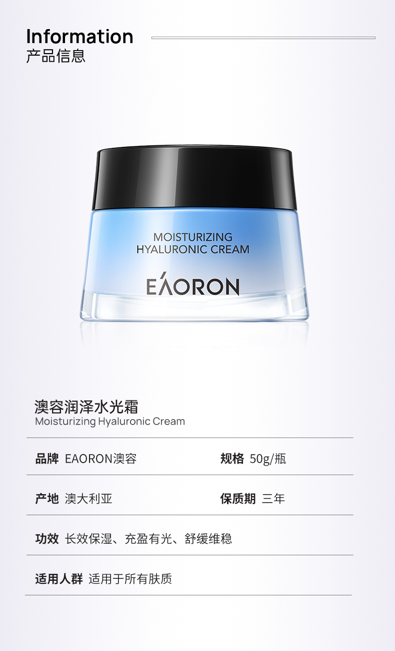eaoron澳容潤澤水光面霜補水保濕滋潤干皮修護面霜提拉緊致護膚女