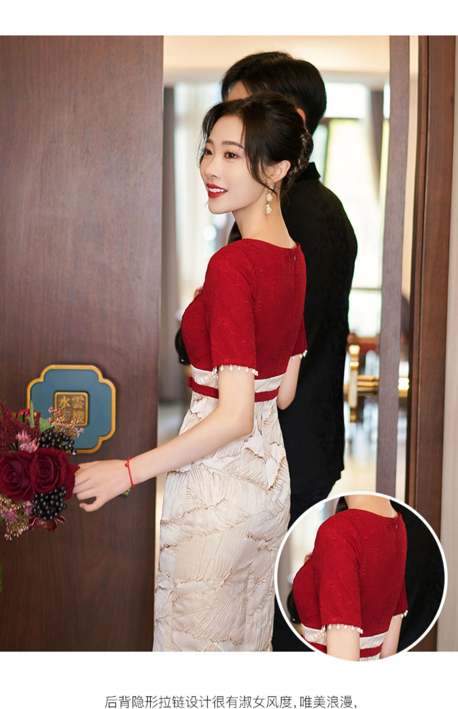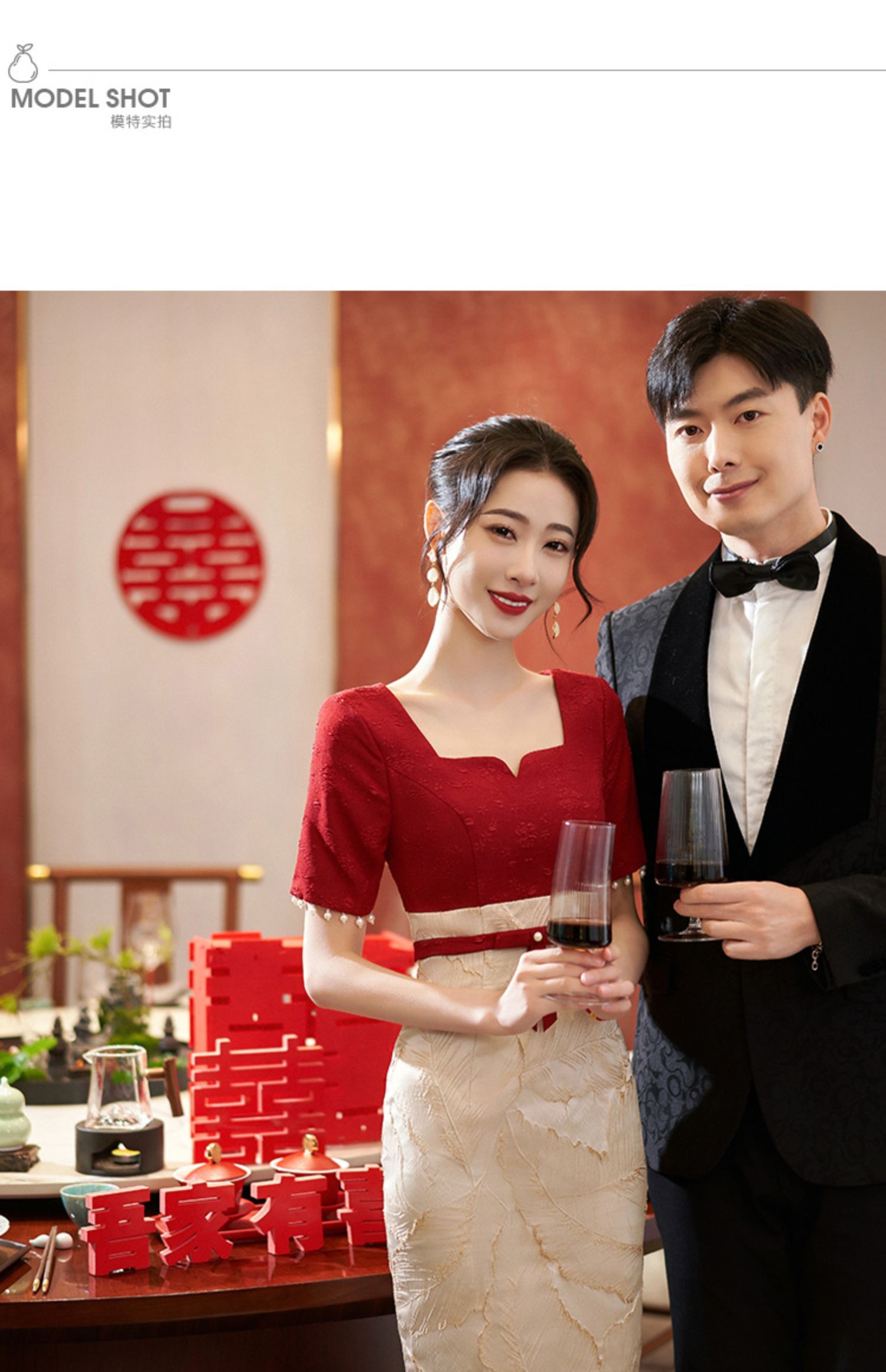 敬酒服新娘2023新款夏季酒紅色結婚訂婚禮服小個子高級魚尾連衣裙