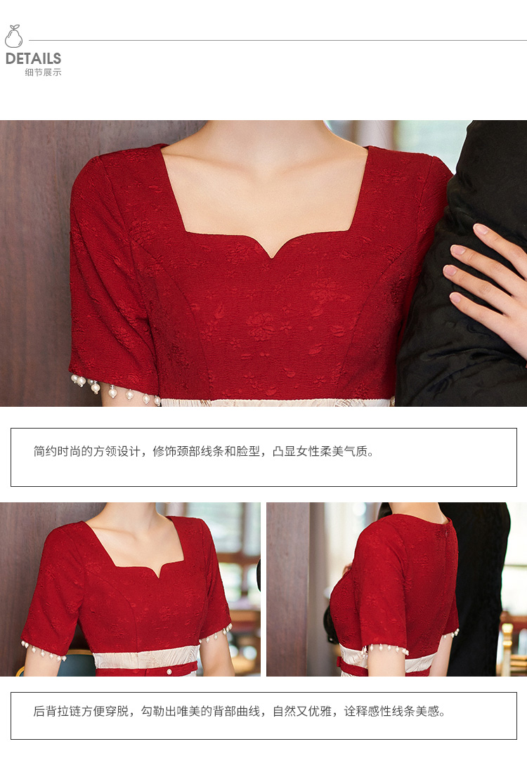 旗袍新娘酒紅色中式結婚禮服敬酒服