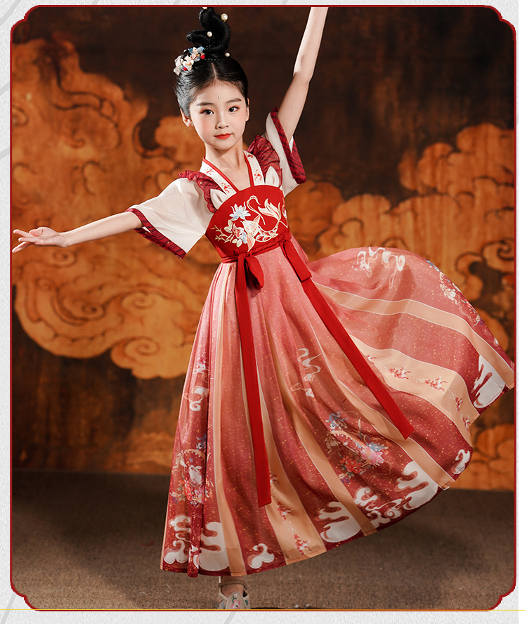 兒童古典舞演出服漢服女童敦煌舞蹈服襦裙唐裝古風超仙唐朝中國風