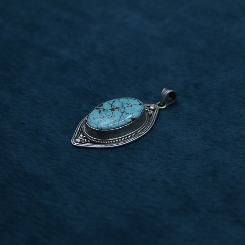 尼泊爾手工純銀飾品綠松石吊墜毛衣鏈民族風藏式個性復古夸張氣質