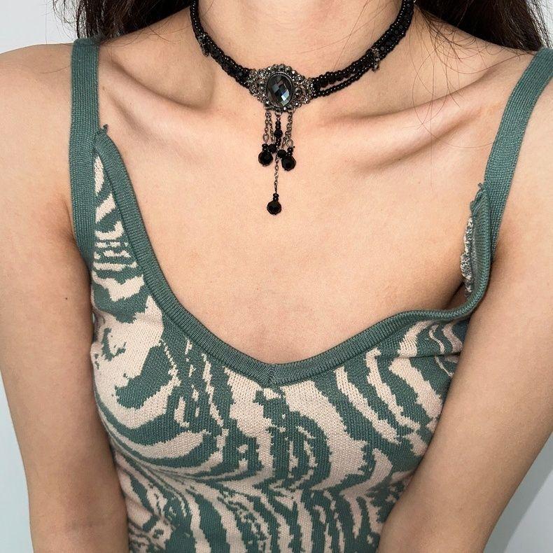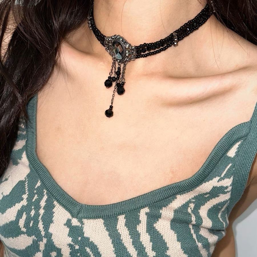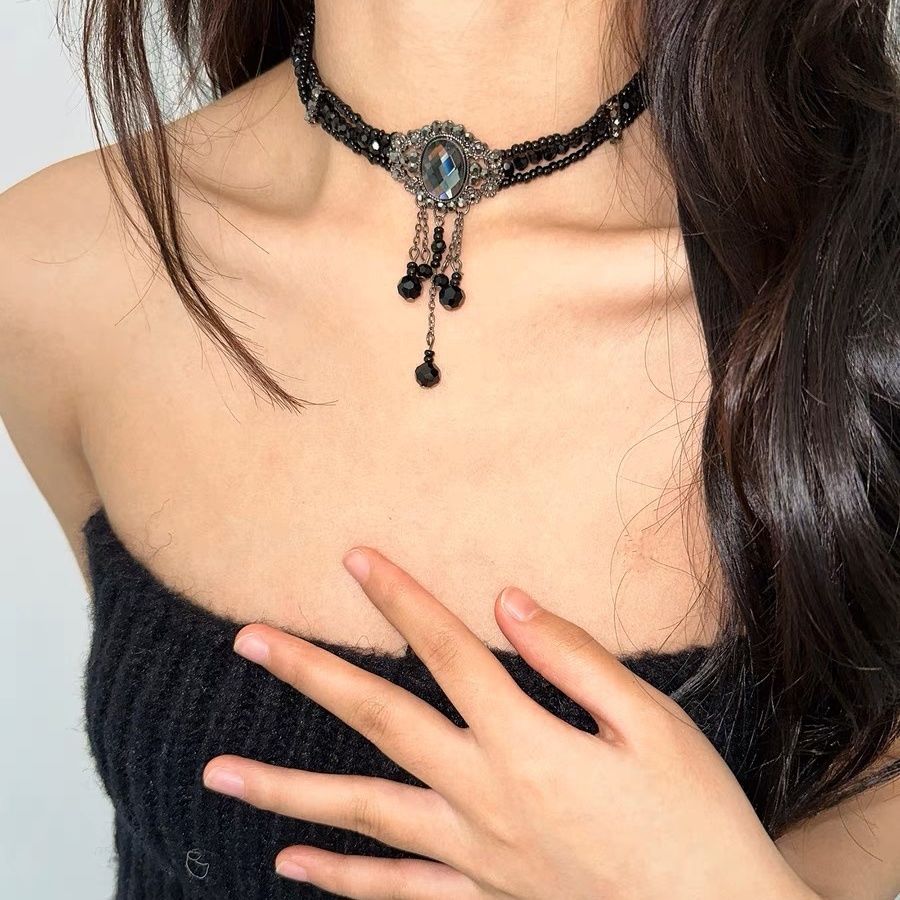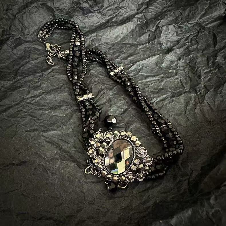 atmshop 暗黑系重工宮廷風黑色珠串輕奢項鏈優雅復古水晶感choker
