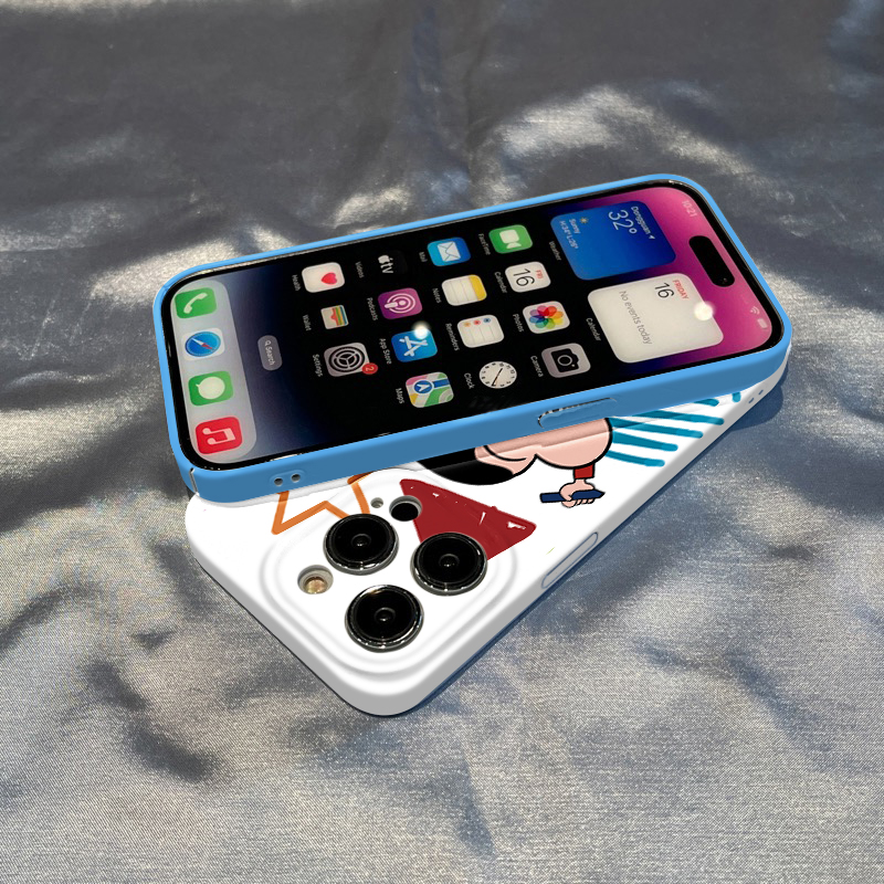 小新大頭適用蘋果14手機殼新款iPhone13防摔菲林硬14Pro情侶卡通高級11Promax搞怪12阿呆14plus全包保護套