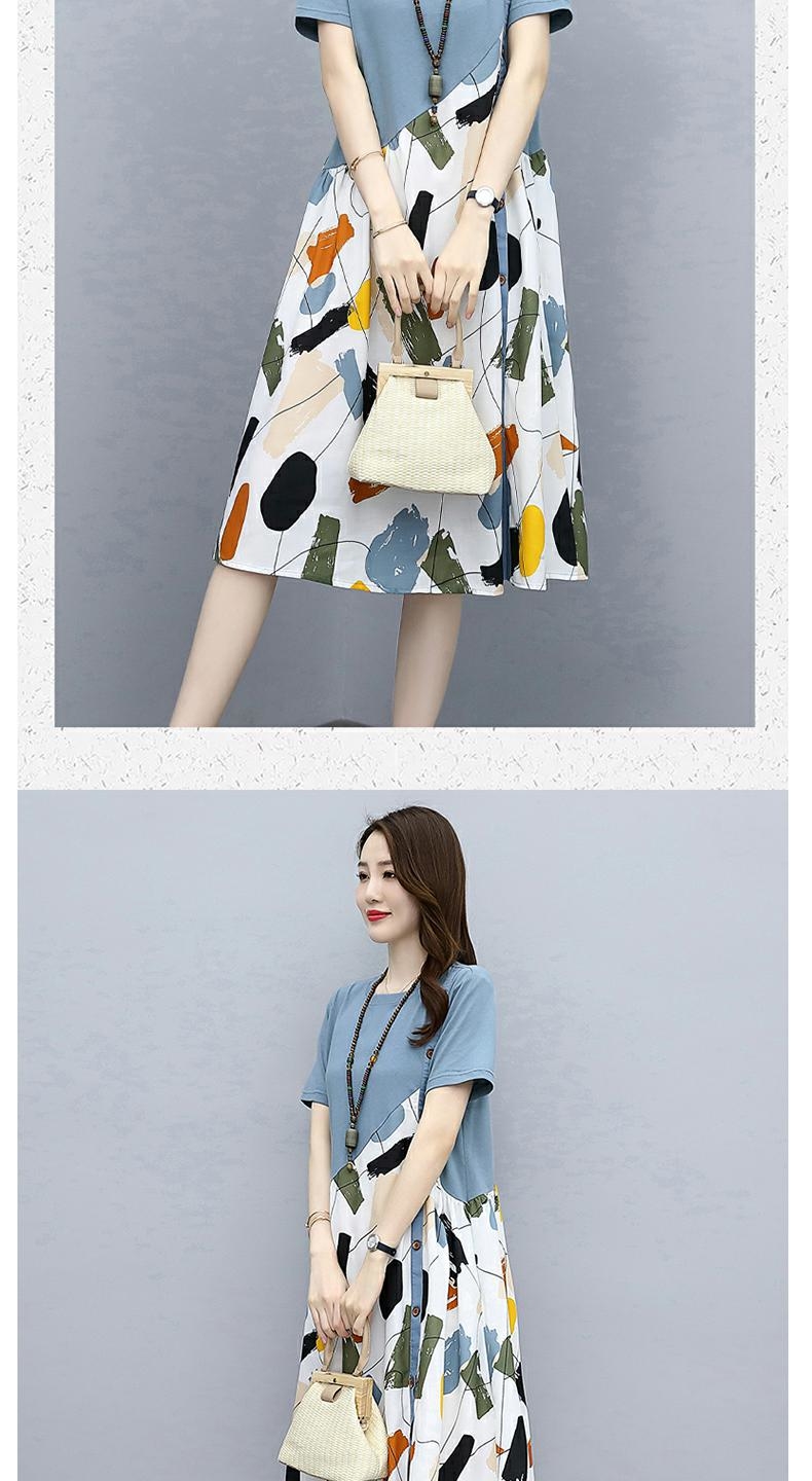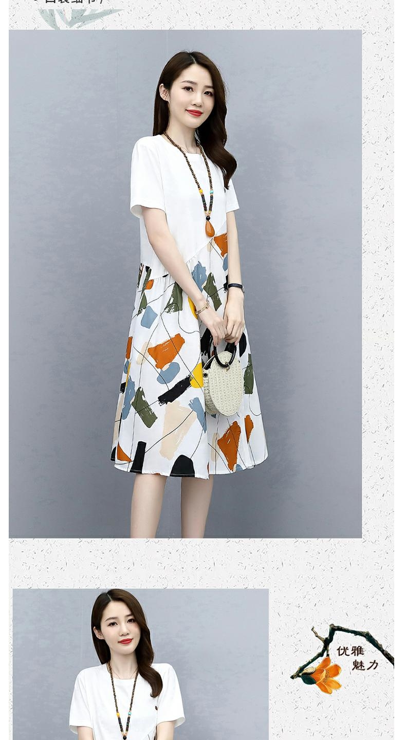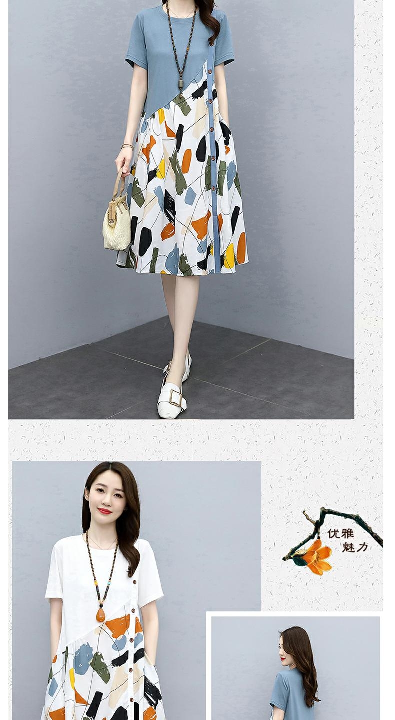 連衣裙女夏季新款印花拼接寬松大碼遮肚子顯瘦胖mm過膝薄款a字裙