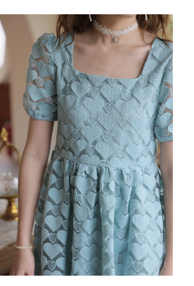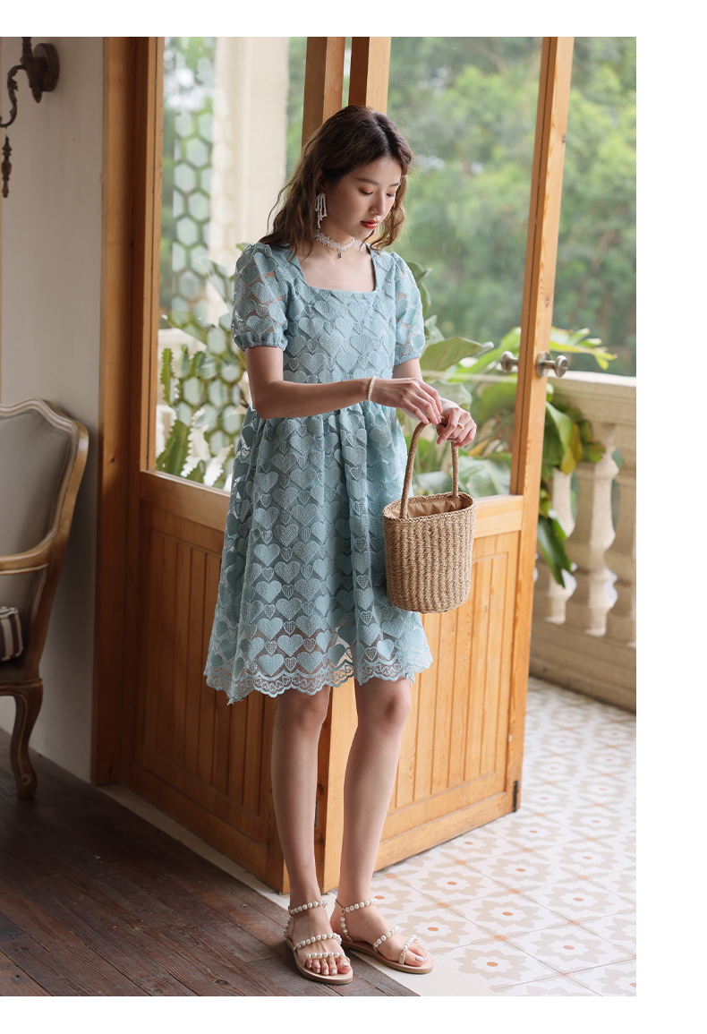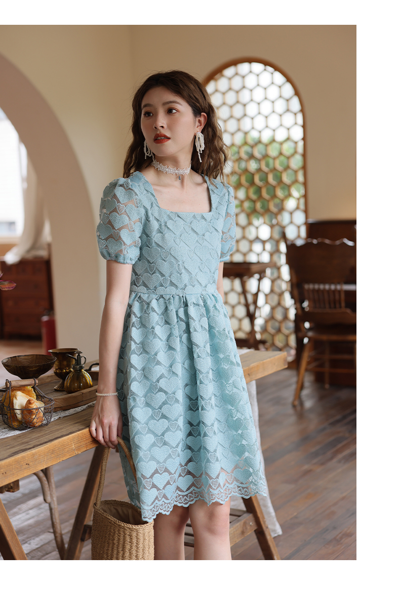 貓娘志法式連衣裙女夏新款復古方領小個子短裙氣質甜美收腰公主裙
