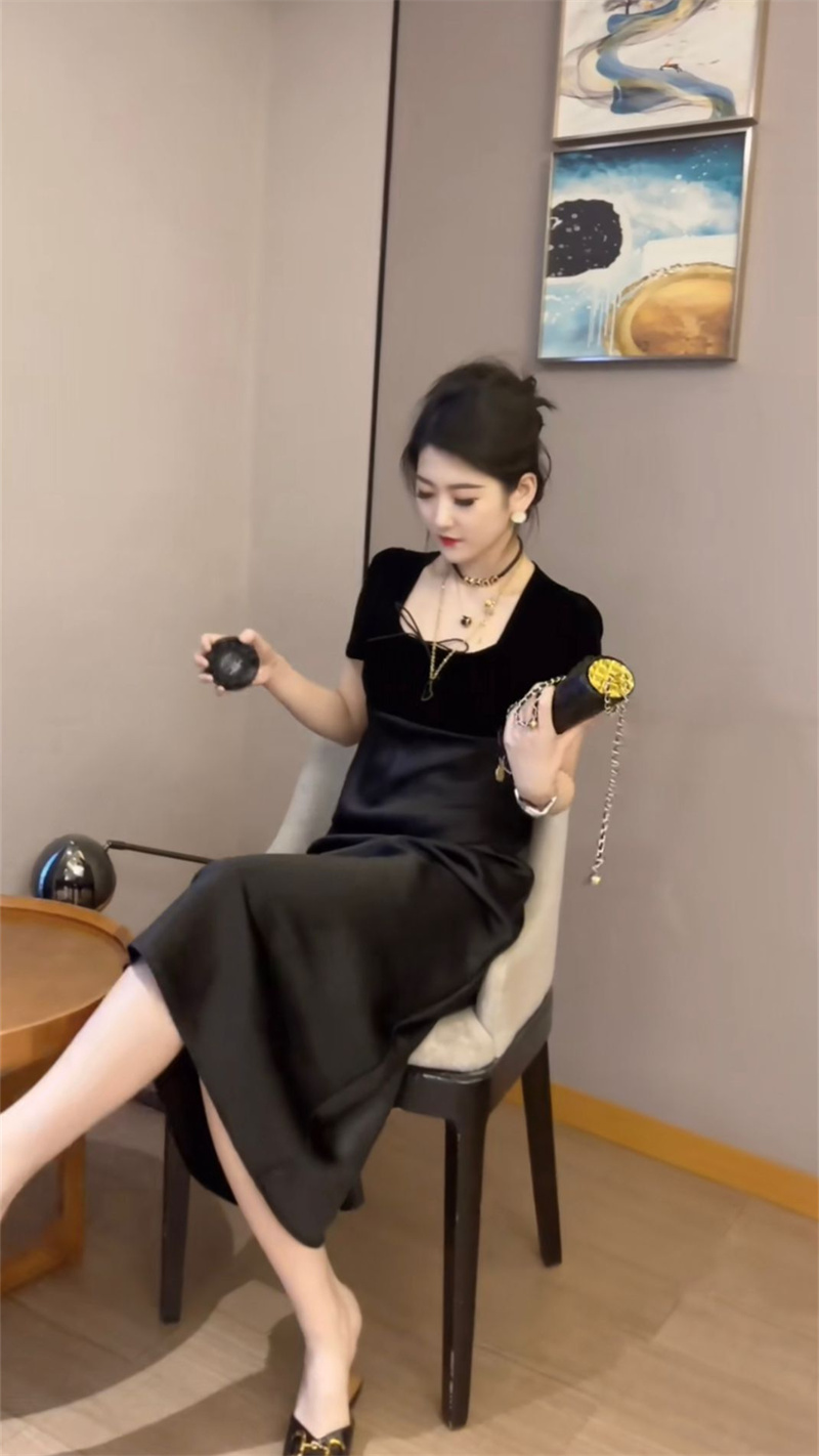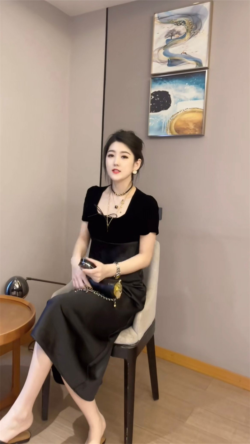 高端氣質網紅爆款2023年夏季新款時尚洋氣收腰顯瘦短款過膝連衣裙