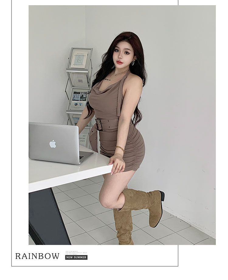 芯芯【沙漠戰神】純欲辣妹微胖女孩2023年夏裝掛脖吊帶針織連衣裙