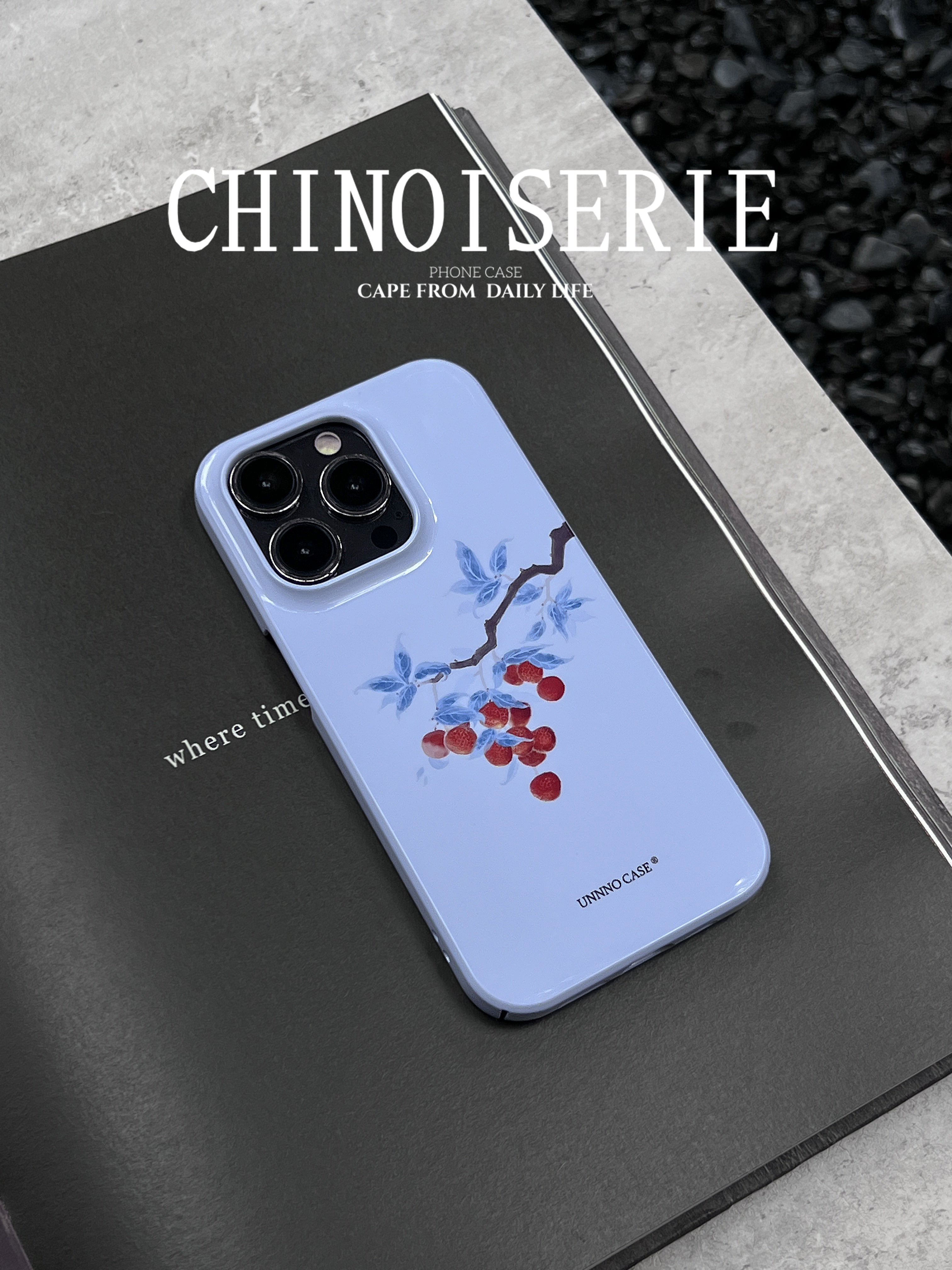 UNNNO藍色荔枝原創小眾設計全包菲林手機殼復古簡約適用蘋果12iPhone14ProMax 13ProMax彩繪藝術防滑保護殼xr
