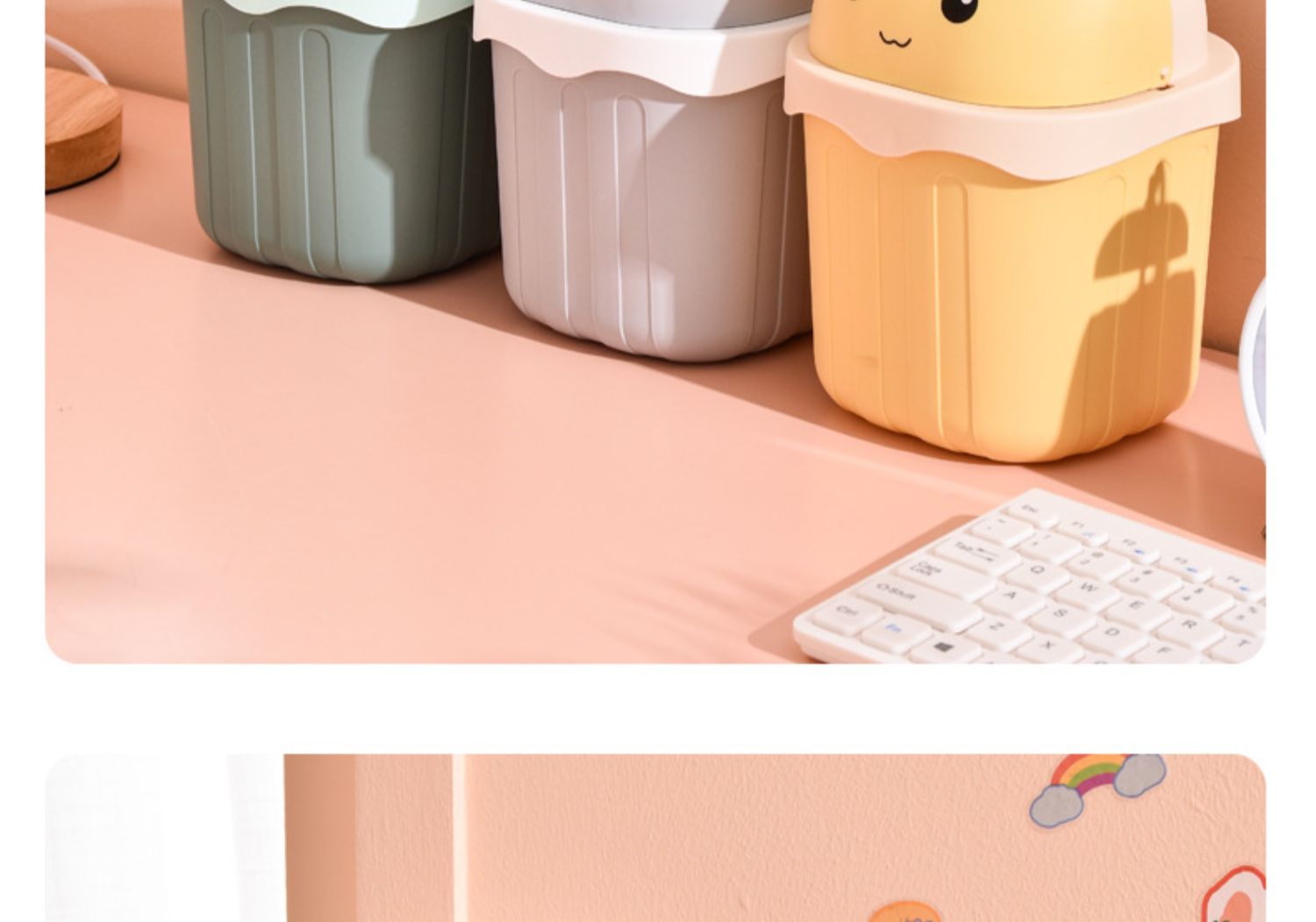 桌面學生書桌辦公室桌上帶蓋垃圾桶