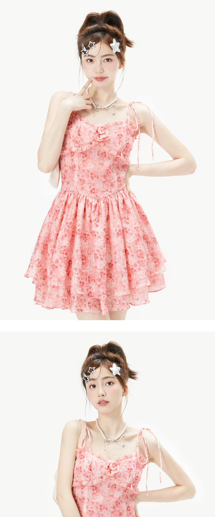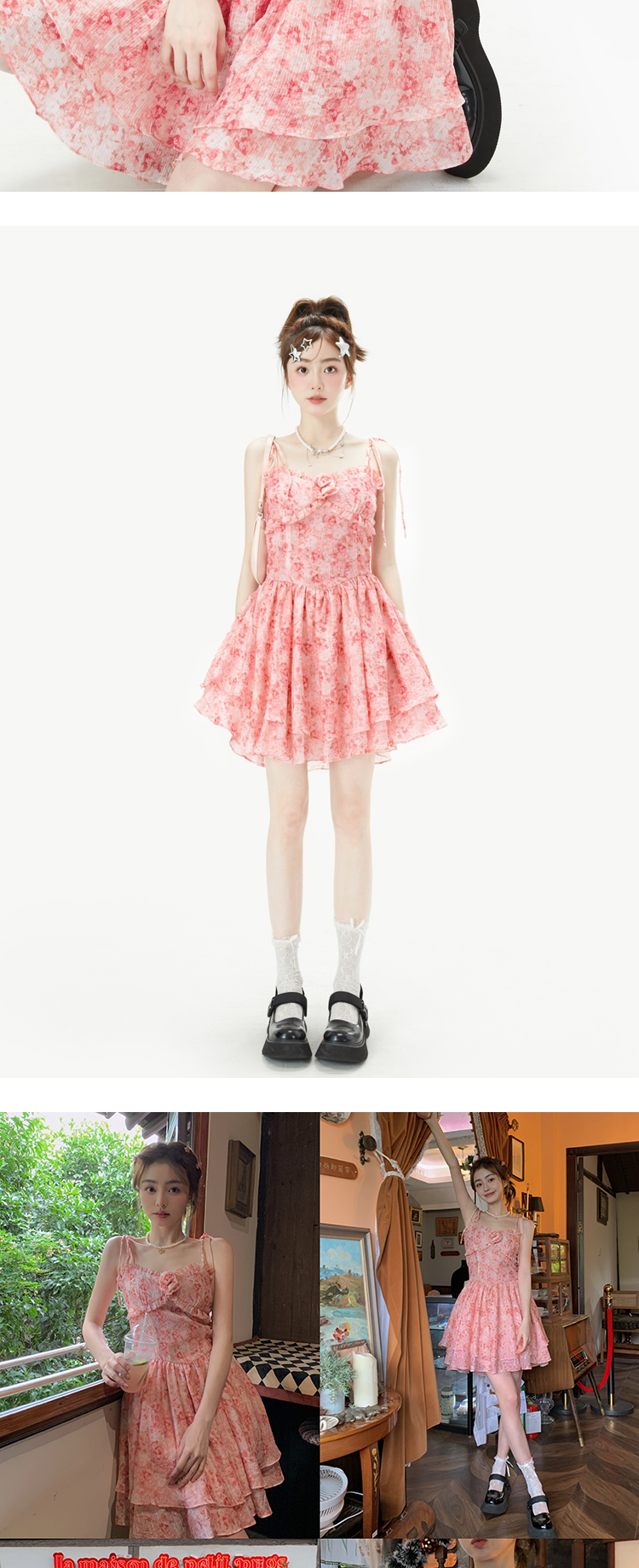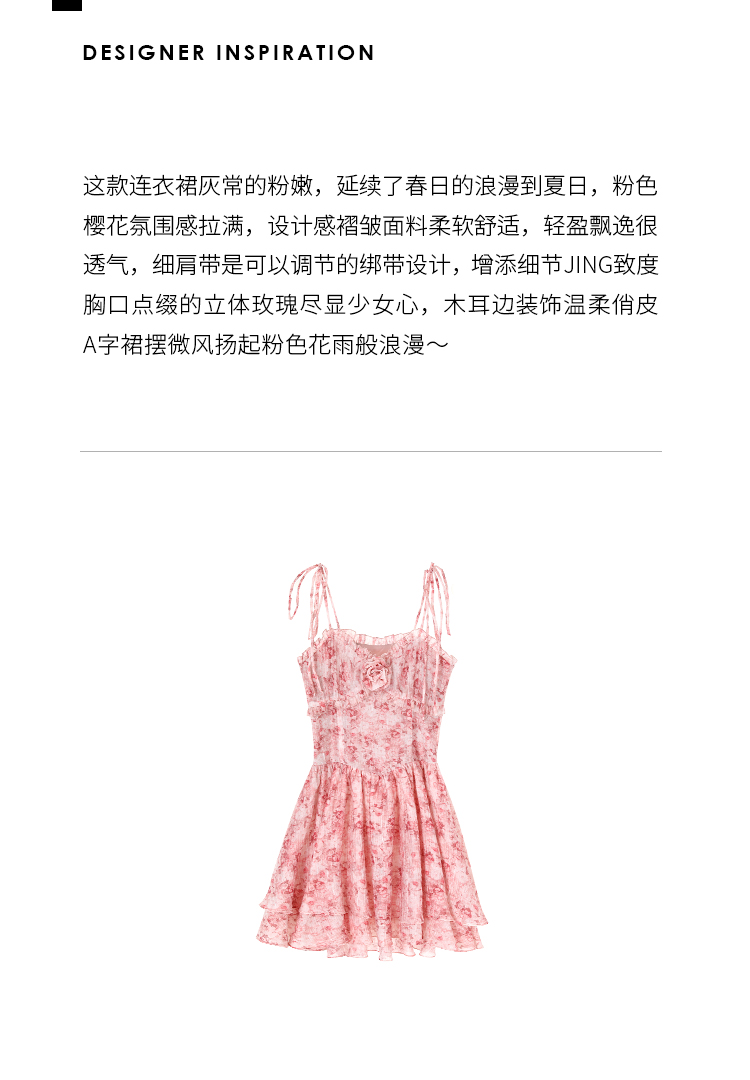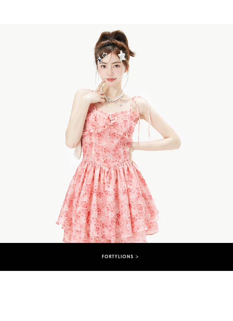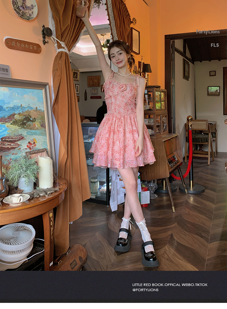 fortylions四十只獅 茶歇法式粉色碎花連衣裙收腰純欲辣妹吊帶裙