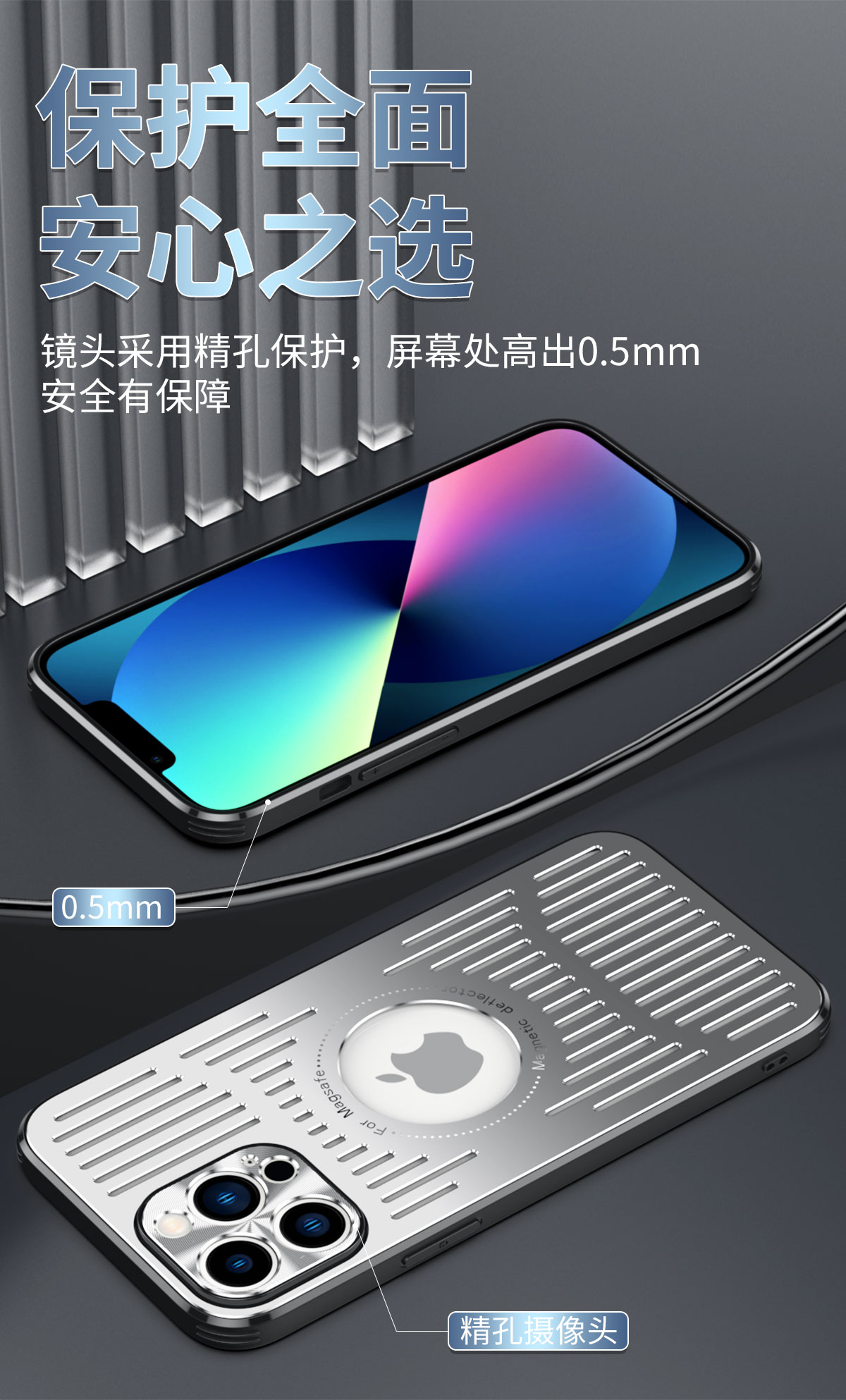 適用于蘋果14Promax金屬散熱手機殼iphone13鋁合金鏤空降溫12promax散熱14pm金屬殼13pm透氣防摔高級感保護套