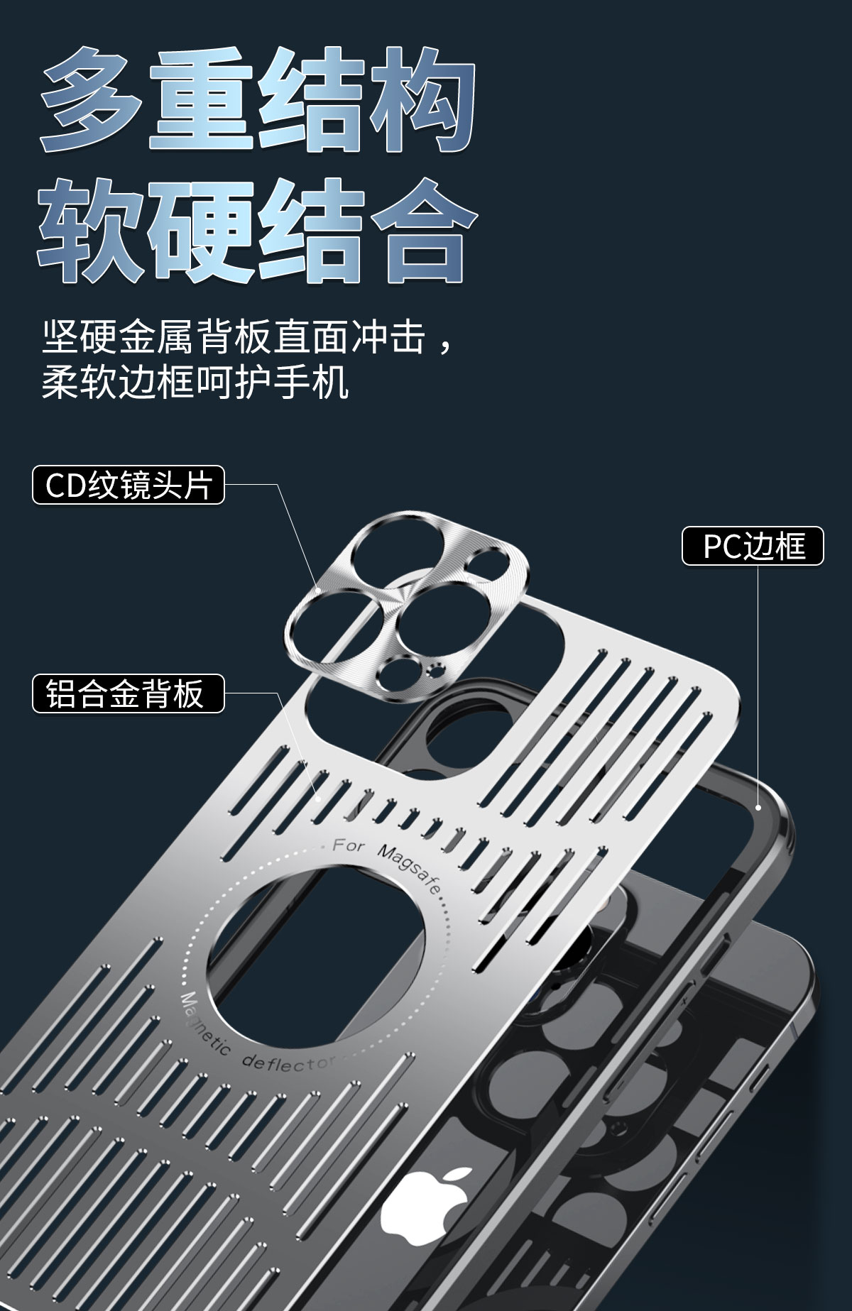 雅盾鋁合金適用iPhone14promax磁吸充電手機殼13透氣散熱殼蘋果13pro抗指紋保護套遠峰藍男女12創意高檔防摔