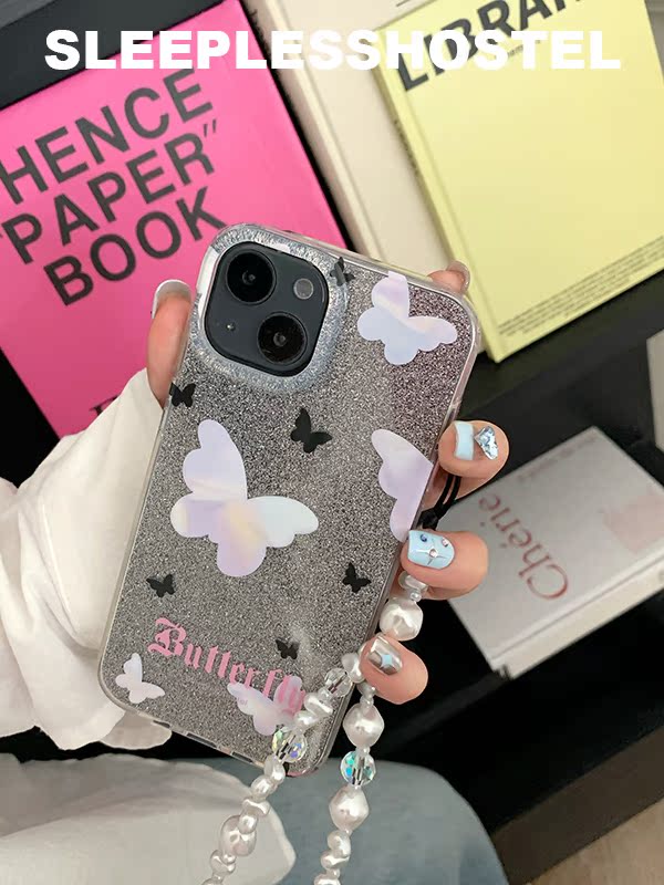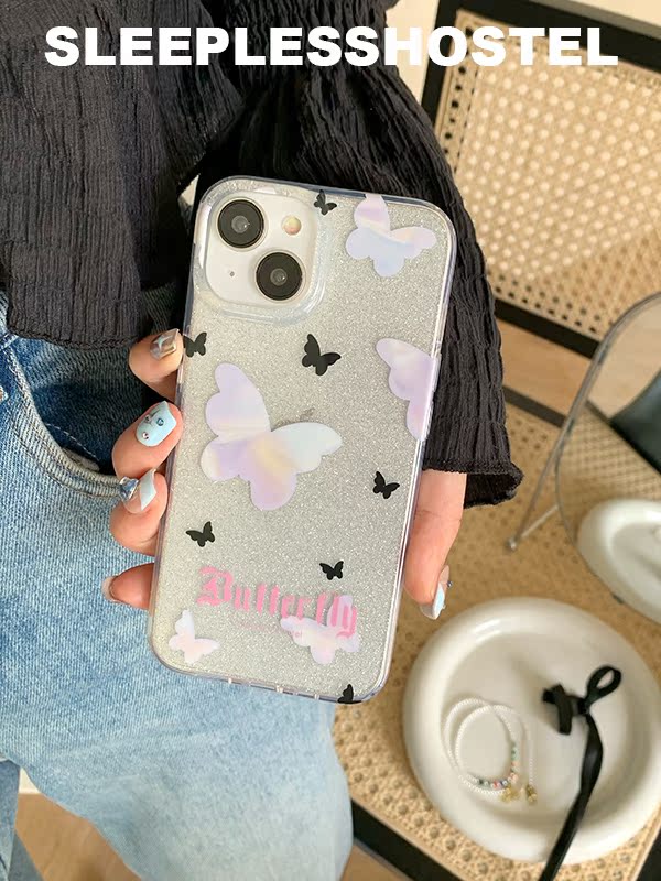 透明材質是硬背板+硅膠軟邊框 閃粉設計