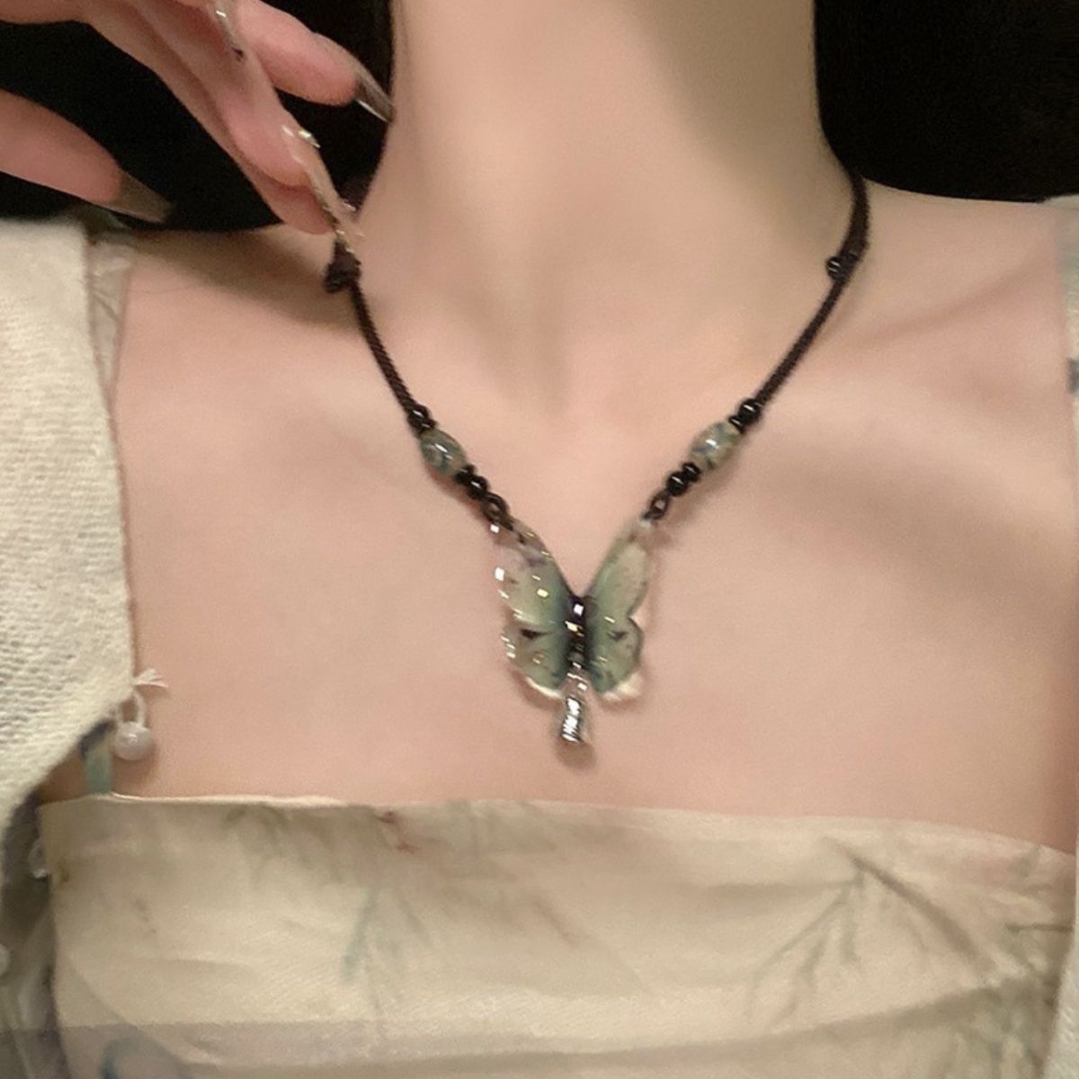 清風蝴蝶清冷感項鏈 原創小眾設計民族風禪意侘寂風鎖骨鏈女新款