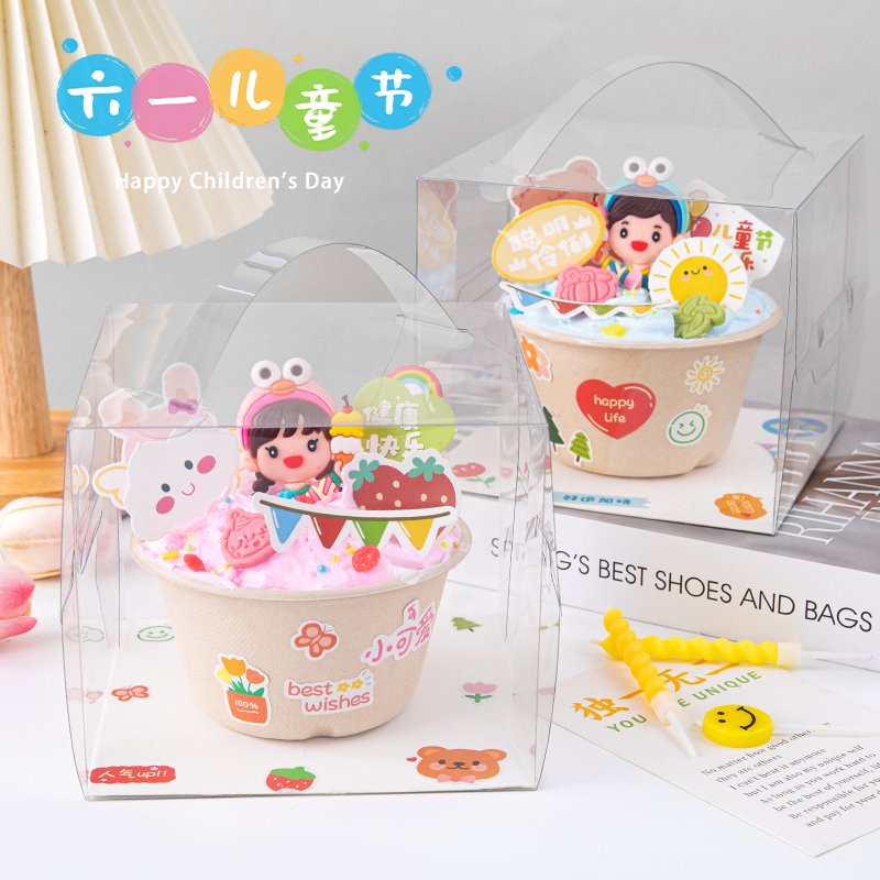 六一兒童節紙漿碗蛋糕裝飾軟膠冰淇淋男孩女孩節日快樂插牌插件