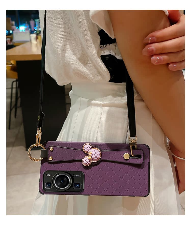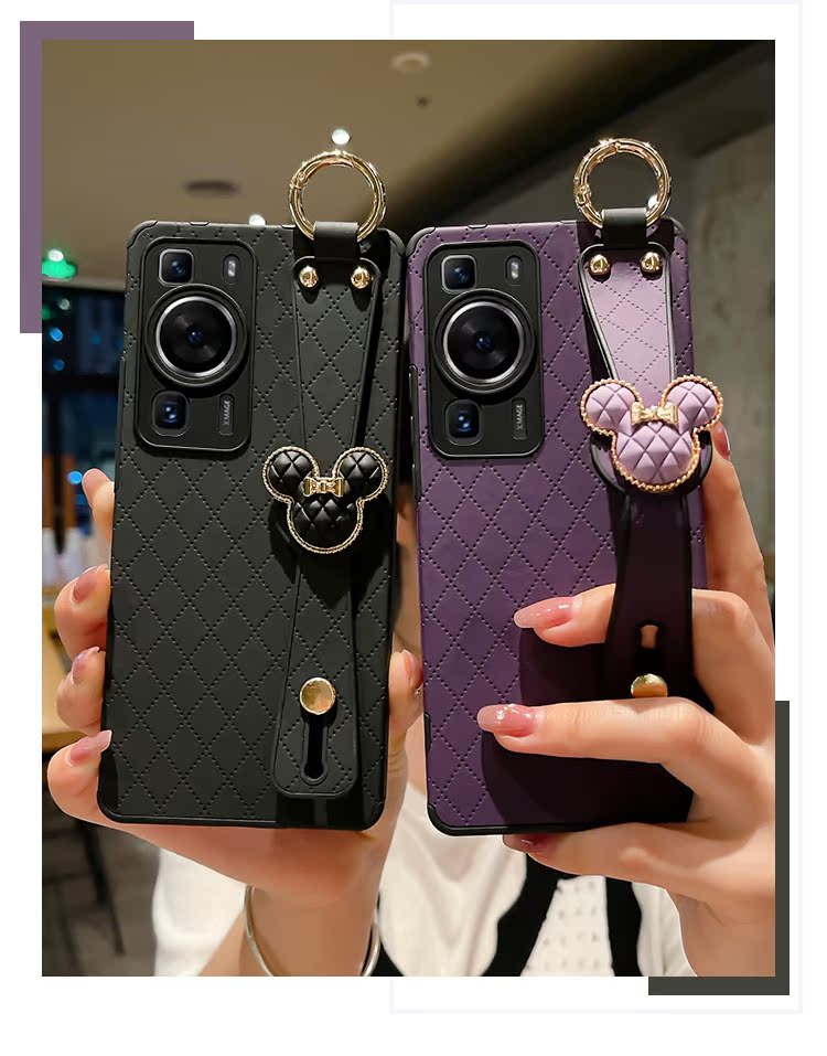 卡通米奇斜跨背帶式適用華為P60手機殼P50Pro硅膠套防摔P40軟殼全包P30簡約新款P50e腕帶支架P4o女款高級感潮