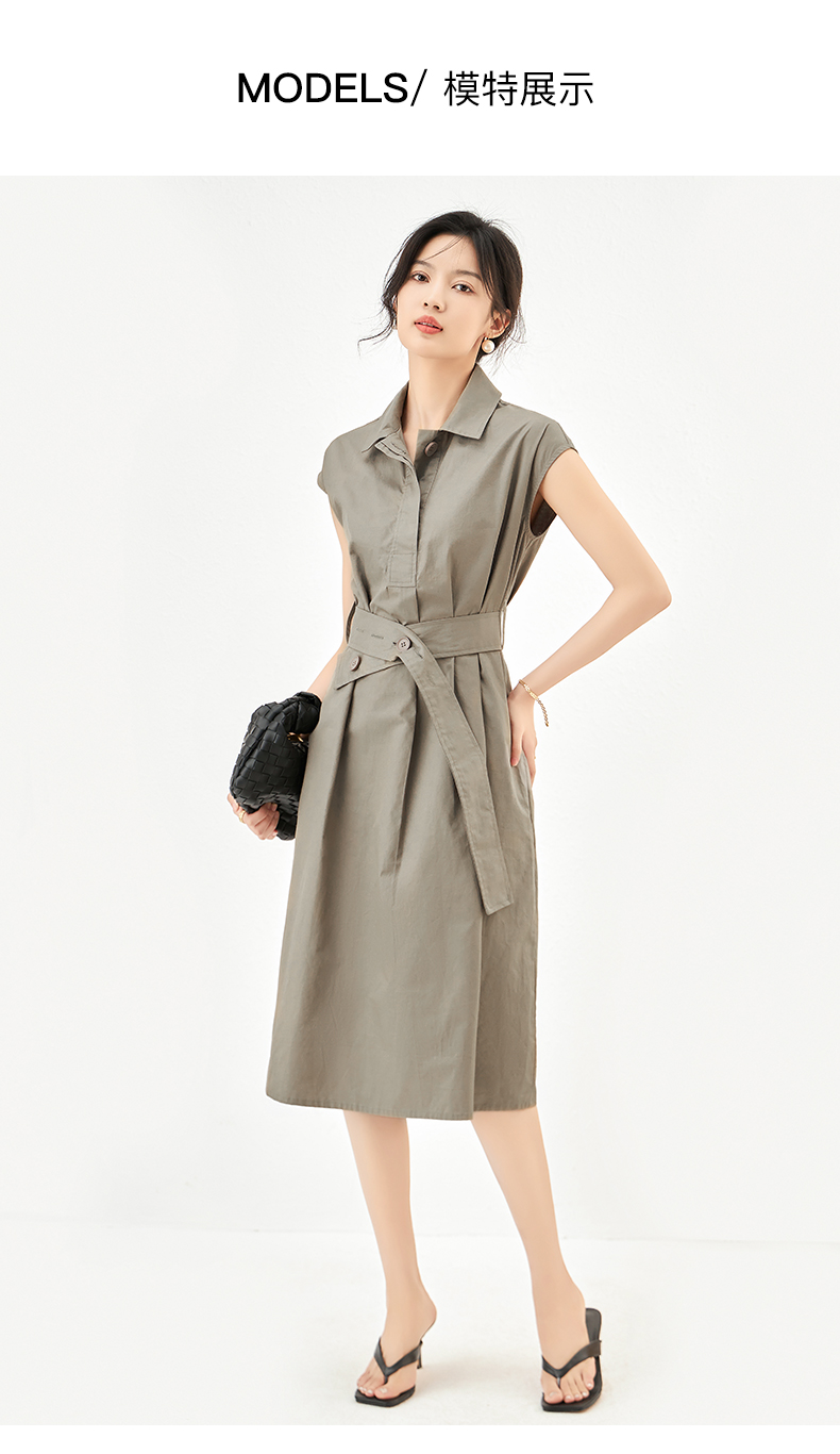 襯衫連衣裙女裝夏季新款Polo領單排扣凈色通勤百搭收腰顯瘦中長裙